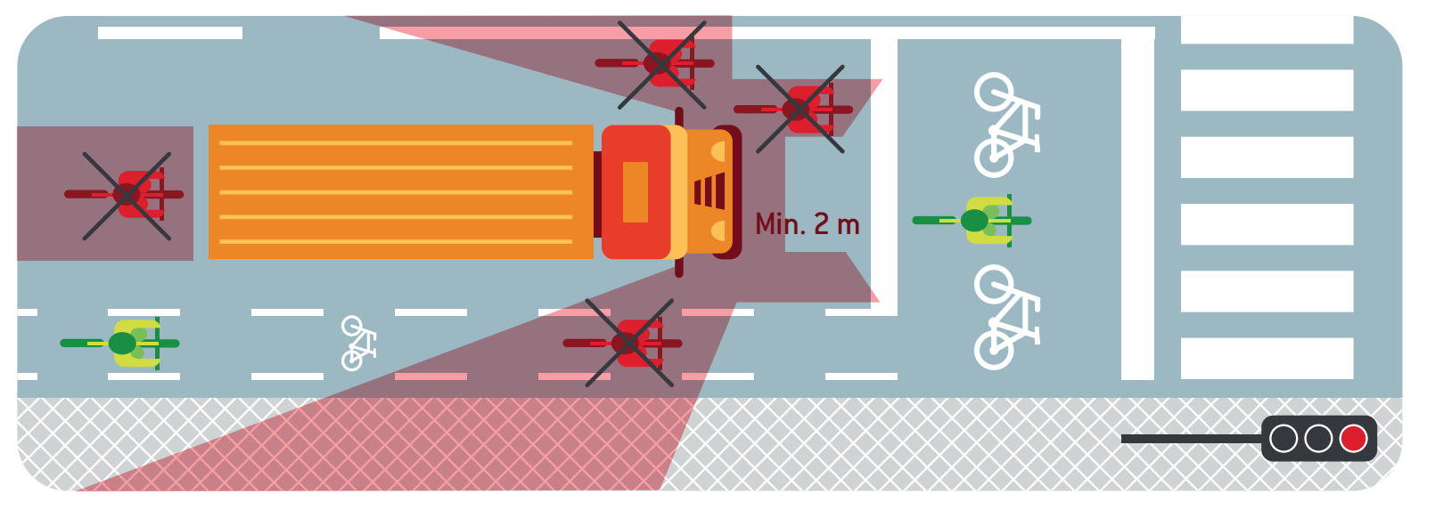 In urban areas with much motorised traffic, such as Brussels, the blind spot is one of the biggest hazards for pedestrians and cyclists. In 2024, three in nine fatal traffic victims were involved in a lorry blind spot accident.
