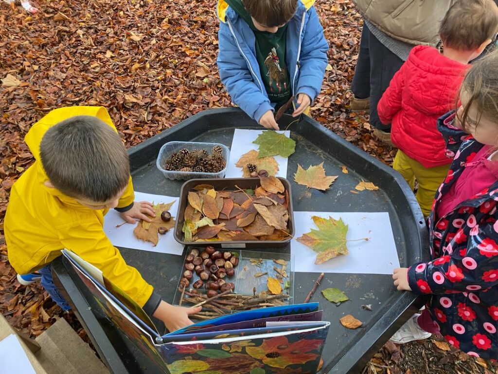 In addition to our outdoor play and learning space, our children embark on weekly exciting expeditions to explore the woods (Bois de la Cambre) situated across the street emphasising a unique learning focus. These weekly adventures not only immerse children in the natural world but also provide structured opportunities for them to engage with diverse ecosystems, flora, and fauna. By delving into the woods with purposeful learning objectives, children deepen their understanding of ecology, biodiversity, and environmental sustainability. These regular visits foster a sense of wonder and curiosity, instilling in children a profound appreciation for the rich tapestry of nature that surrounds them.