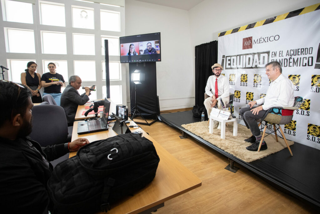 Latin American SOS advocates and global health experts speak to the media at a press conference in Mexico on May 24, 2024, demanding a Pandemic Agreement that puts lives before the profits of big pharma.