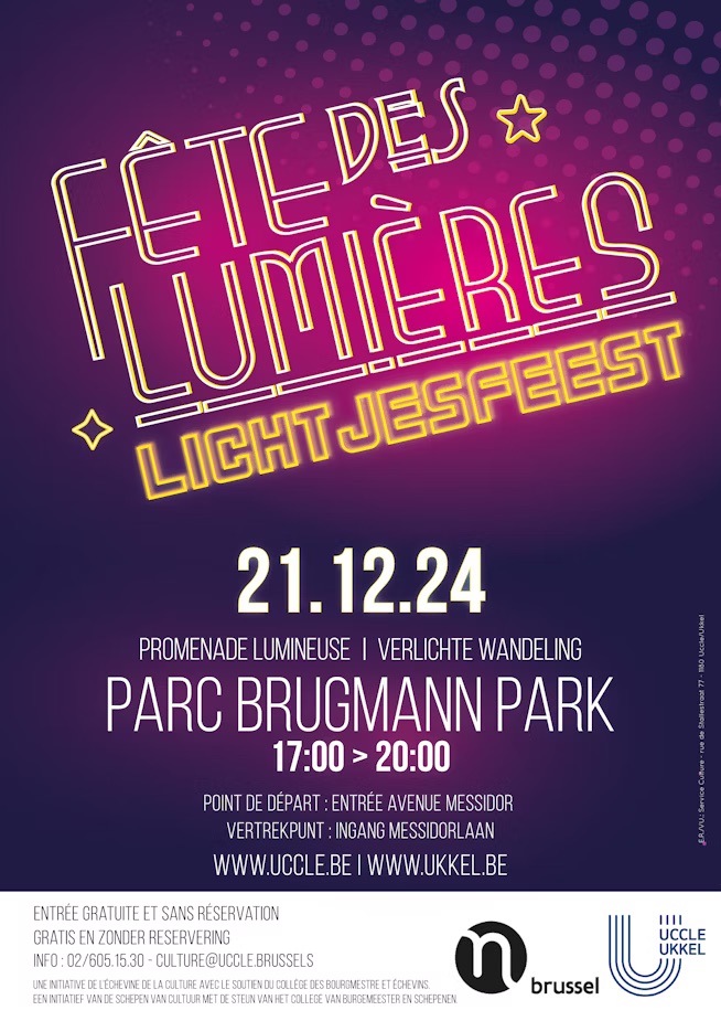 Take a magical nighttime stroll through Uccle's Parc Brugmann, which will be lit up for the occasion. The walk will begin at the park's entrance, on the Avenue Messidor side, and will take you through the park and along the Sukkelweg and finish at the Ferme Rose.