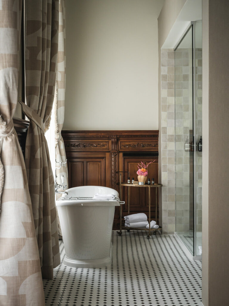 The large windows of The Bluebell Room provide views on the inner garden with daylight flooding in, while The Iris Rooms overlook the city’s lively streets, featuring authentic finishes like a fireplace, wooden doors and authentic moldings.