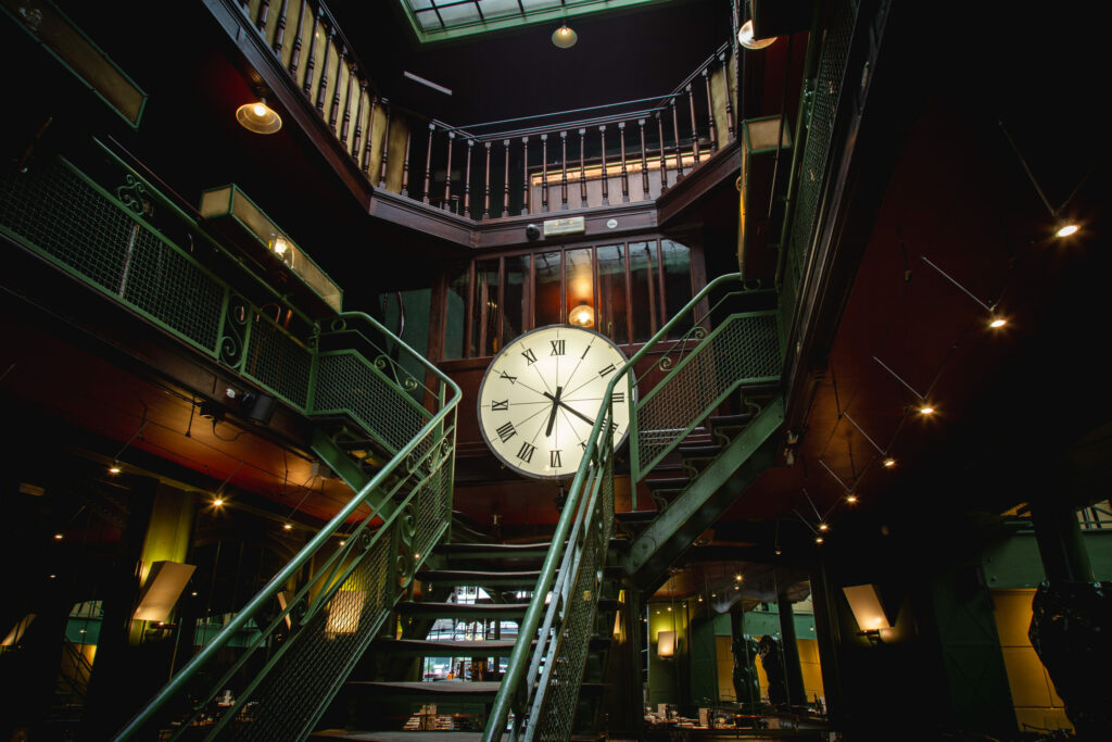 Stepping into La Quincaillerie, you immediately sense the rich history of the building. The industrial charm of the space is highlighted by cast-iron staircases, soaring ceilings, and beautifully preserved wooden elements. The Art Nouveau details, including ornate lighting and intricate ceiling moldings, further enhance the nostalgic yet sophisticated atmosphere. The vintage cabinets, timeless furnishings and architectural features create a seamless blend of the old and the new.