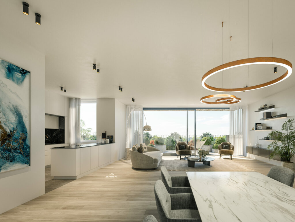 The design of Les Emeraudes puts full emphasis on openness and accessibility: large windows, wide doorways and barrier-free transitions ensure a comfortable and pleasant living experience. Additionally, the project focuses on energy-efficient solutions such as solar panels, heat pumps and advanced insulation.