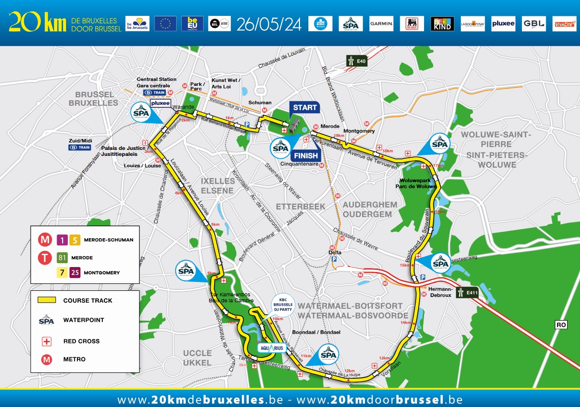The race will start in the Parc de Cinquantenaire with the para-athletes at 09:30, followed by the runners at 10:00 in six waves. Lastly, those walking the route will start at 11:30.