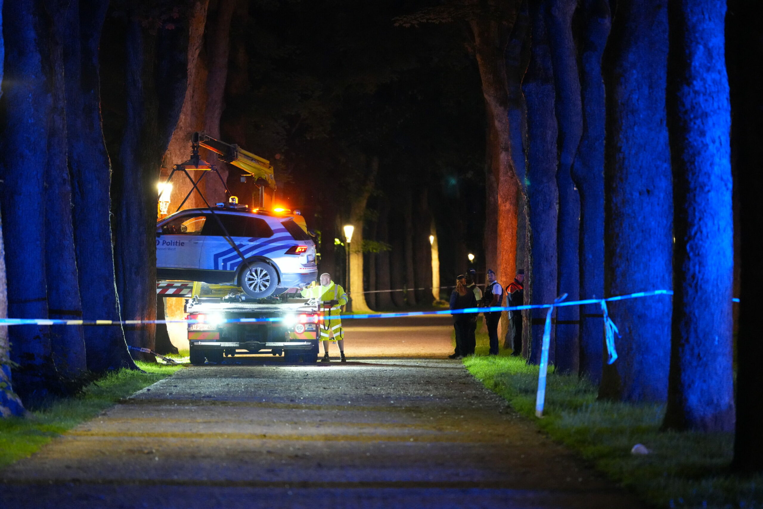 Police is seen at the area where a 12-year-old died after being hit by a police car, in Elisabeth Park, Brussels, on Monday 02 June 2025. Credit: Belga