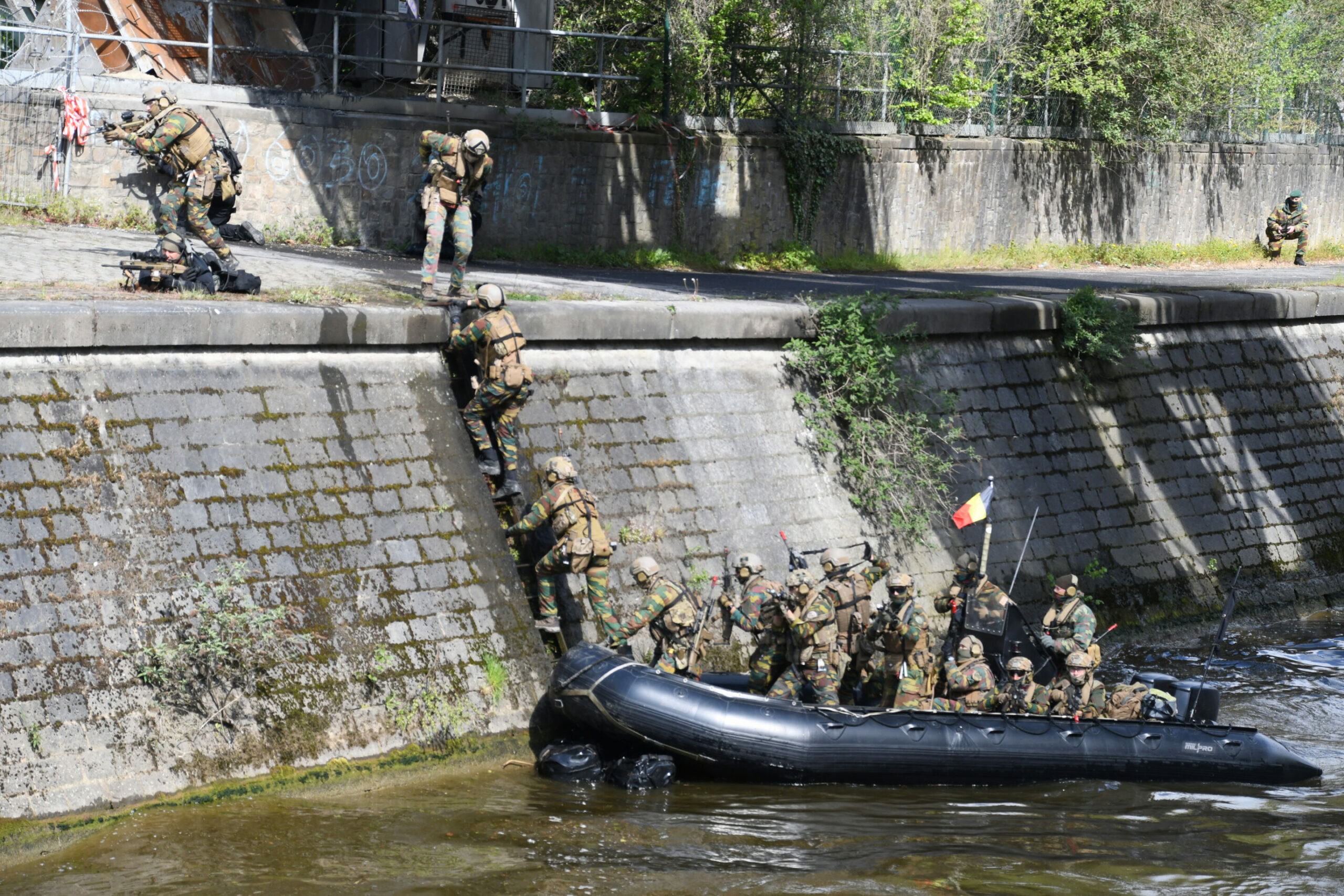 An amphibious assault carried out by the 2nd commando battalion, pictured during a military exercise close to Charleroi, Friday 07 May 2021. Credit: Belga