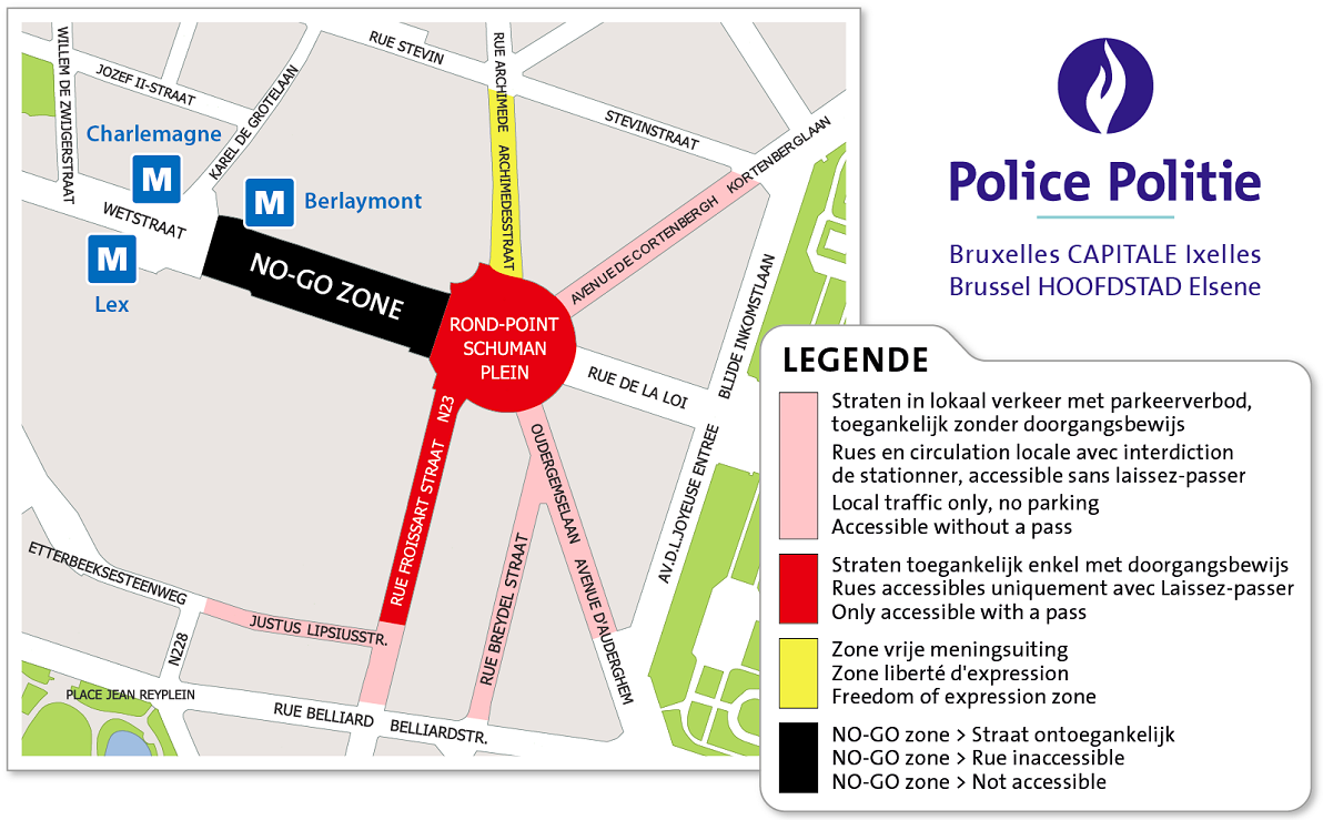 Overview of safety zone/security perimeter. Credit: Brussels-Capital Ixelles police zone.
