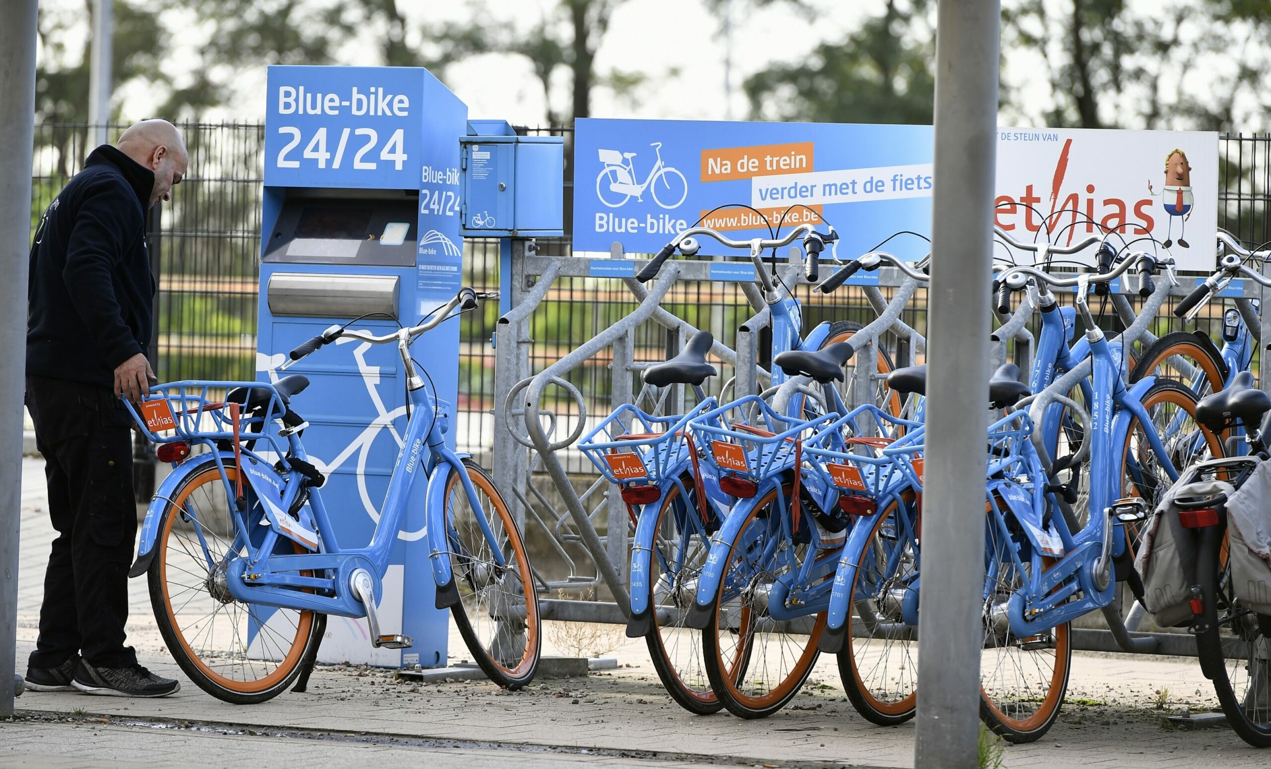 For example, travellers can go from Brussels to Gent-Sint-Peters station, pick up a Blue Bike at the station, cycle around the city, lock it up with its built-in ring long to go for coffee or attend a show, then drop it back at the station at the end of the day.