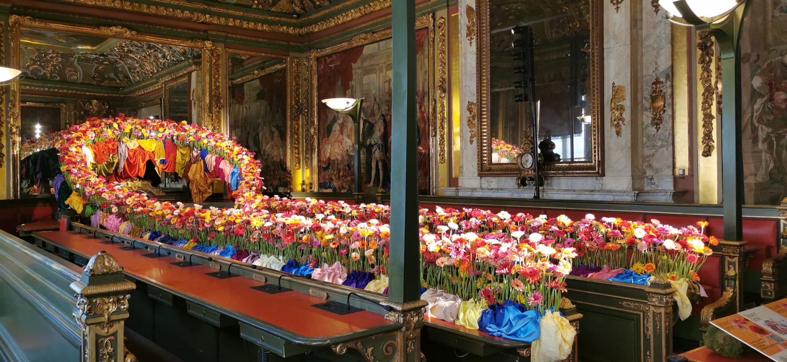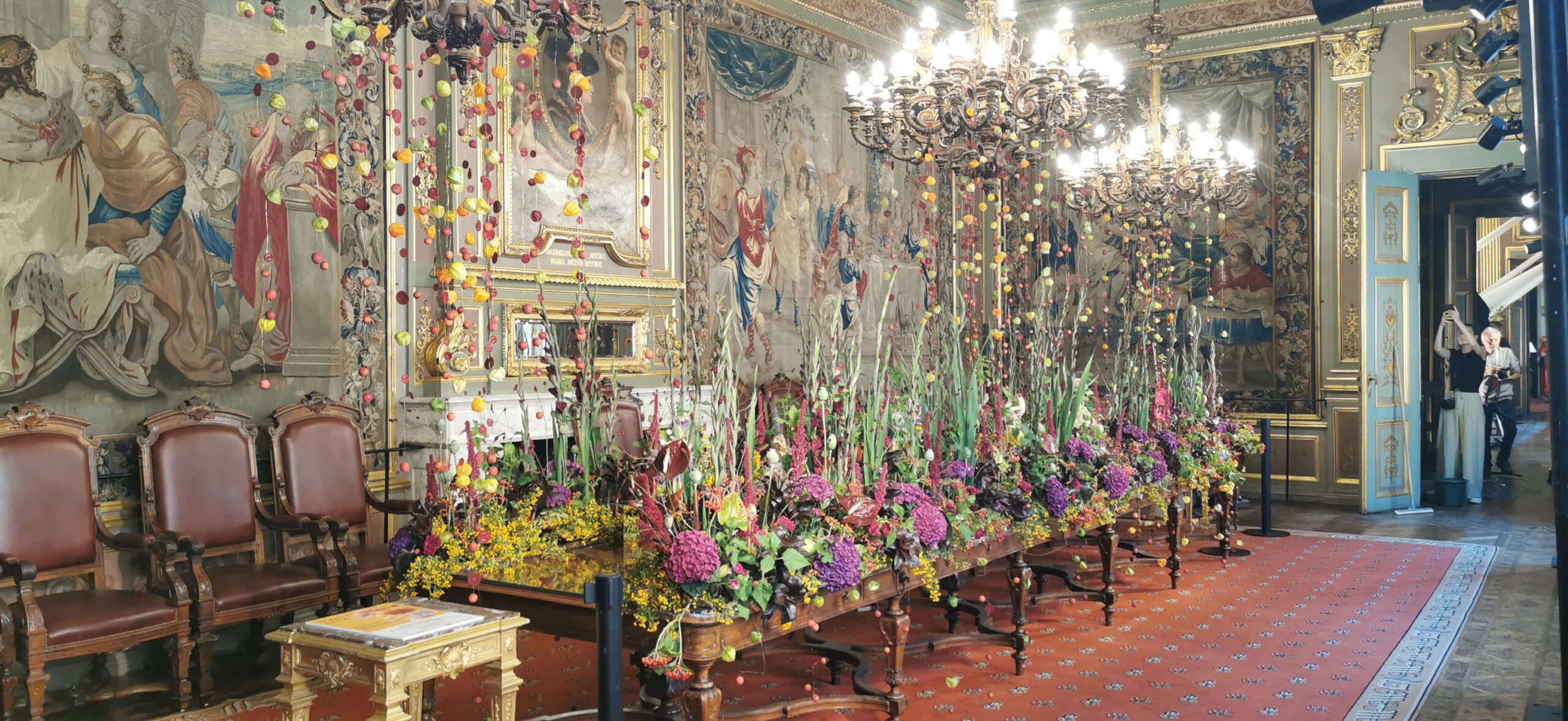 For the 6th edition of Flowertime 30 Belgian floral artists were invited to decorate the rooms of Brussels City Hall. Credit: Mateusz Kukulka/Belga.