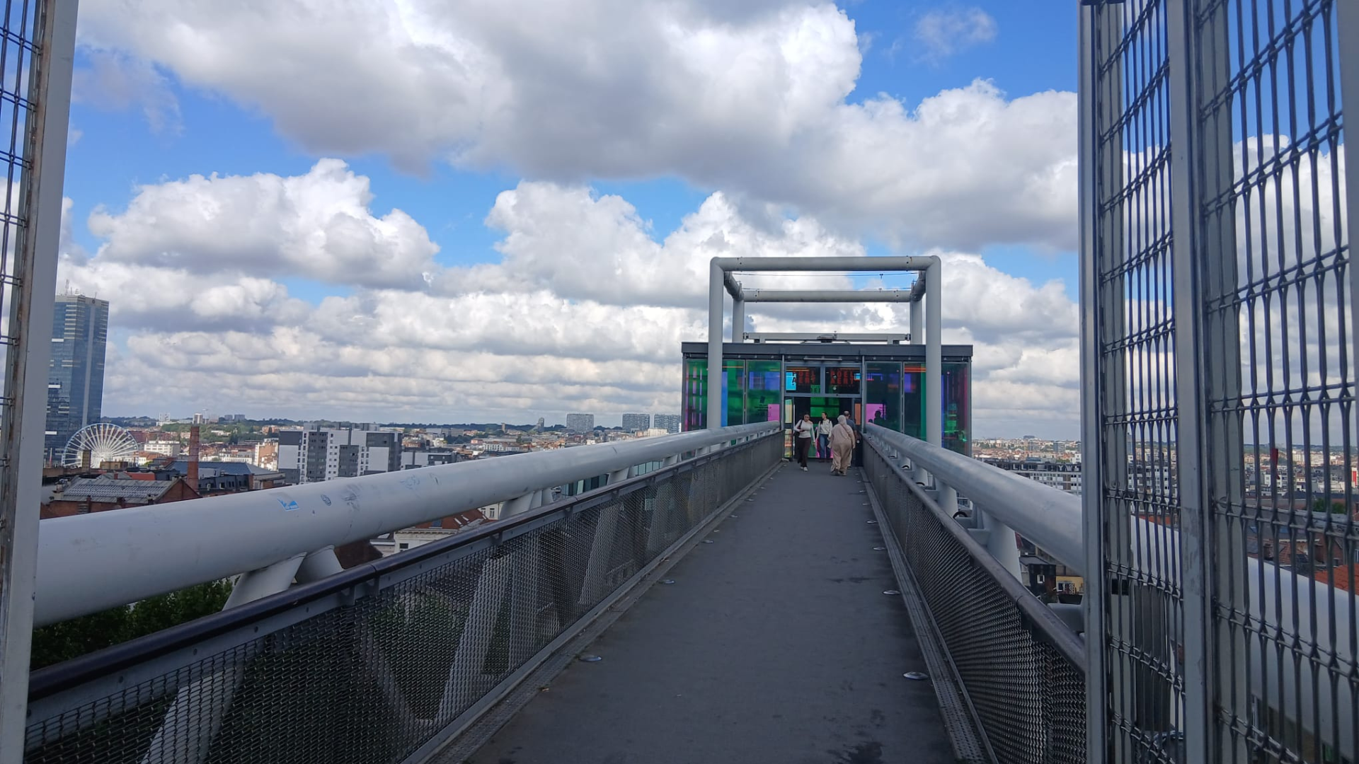 At Place Poelaert, diagonal to the well-known Ferris wheel, is a short bridge that connects the square to two lifts. In addition to providing easier access to the area, the glass lifts are often interesting because of the view they offer of the Brussels skyline.