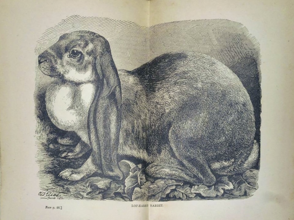 A rare first edition of The Practical Rabbit Keeper from the 1870s depicts Dutch, lop-eared, Himalayan and Angora rabbits printed on foxed pages. Published not too long before Peter Rabbit made his cultural debut in 1902, the black and white pencil sketches capture creatures long beloved – by fanciers, fans, and yes, chefs.