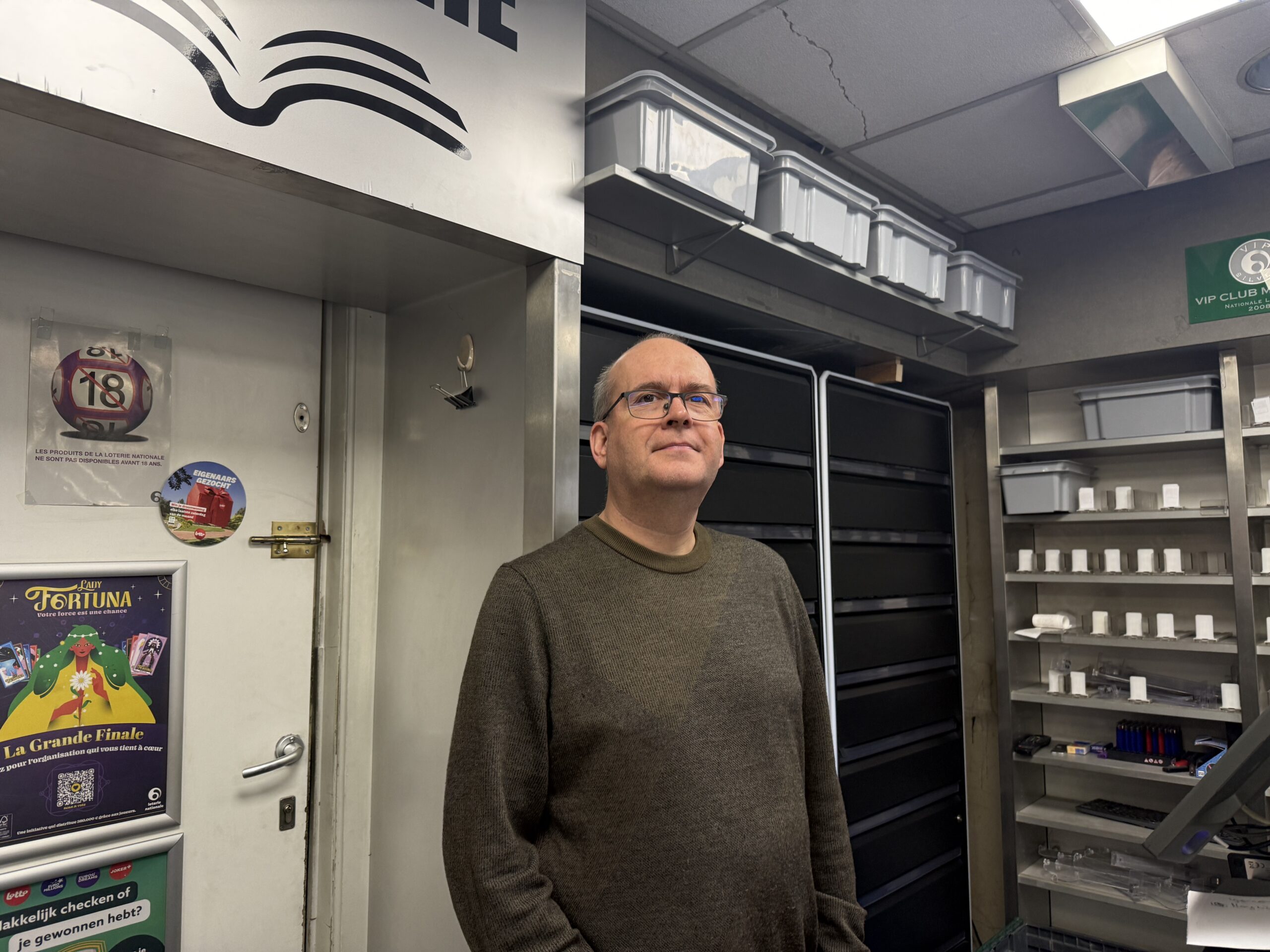 Dirk has been running a shop on Place Sainte-Catherine for 25 years. Credit: The Brussels Times/Léa Huppe