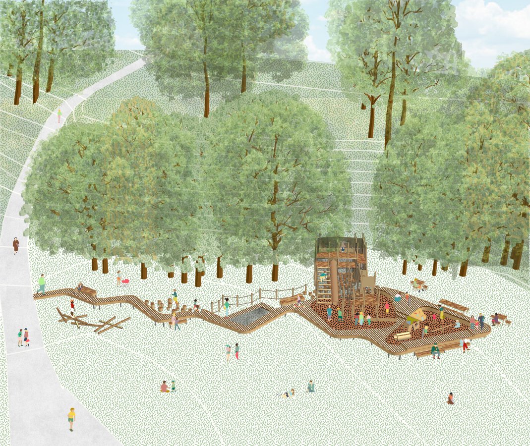 Illustration of wooden play area in Duden. Credit: Bureau Greisch