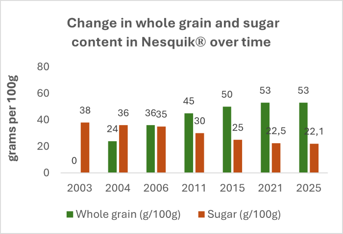 This isn’t just a statistic—it’s a story of relentless innovation and renovation. From 2003 to 2025, CPW increased wholegrain content by 120% and fiber by 288%, while reducing sugar by 42% in its popular Nesquik® Cereal, proving that nutrition and taste can coexist.