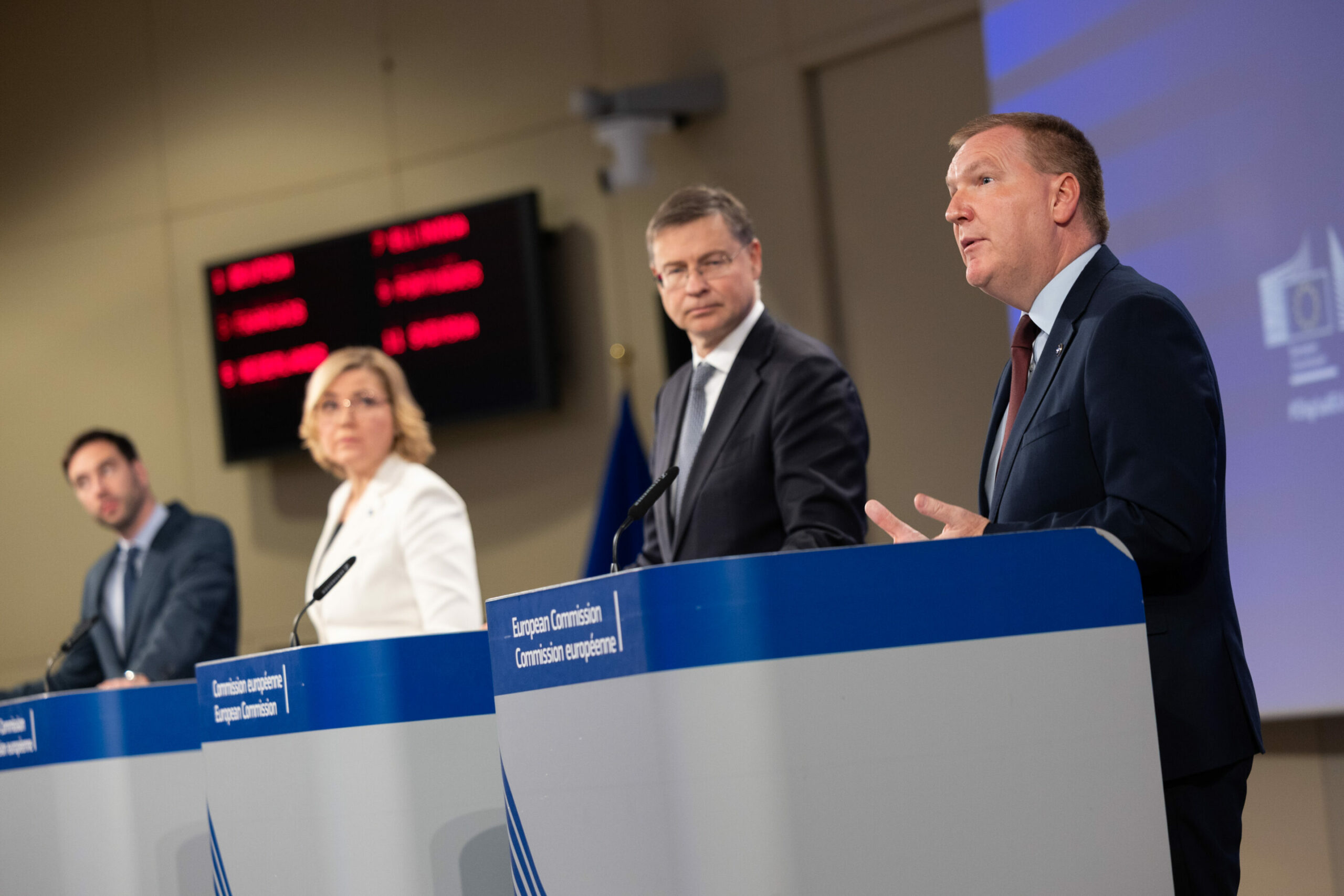 On 19 November 2025, European Commissioners Henna Virkkunen, Valdis Dombrovskis, Michael McGrath give a press conference on the digital simplification package. Credit: EU