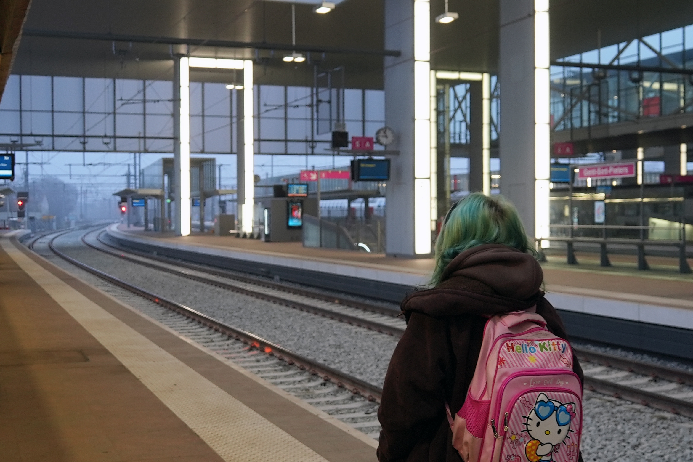 A passenger pictured on the tracks on the first day of a 5-day strike of the national railway company SNCB/NMBS, at the Gent-Sint-Pieters train station in Gent on Monday 26 January 2026. Credit: Belga/Jonas D'hollander