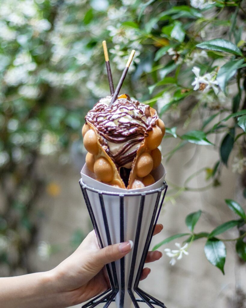 Not a huge fan of the taste of the usual ice cream cones? Don't panic! If you prefer waffles, Cup 28 offers ice cream served in their famous bubble waffles. A good opportunity to (re)test them while refreshing yourself with a scoop of vanilla ice cream, praline or speculoos.