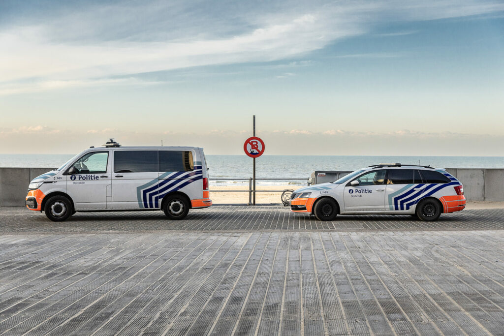Police cars at the beach of Ostend on Wednesday 14 December 2022 where people found a body in the afternoon. Credit: James Arthur Gekiere / Belga