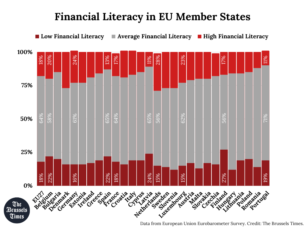 In a representative survey of 26,000 Europeans found that just as many (18%) of the bloc's citizens have a low level of financial literacy, leaving the rest (64%) with an average level.