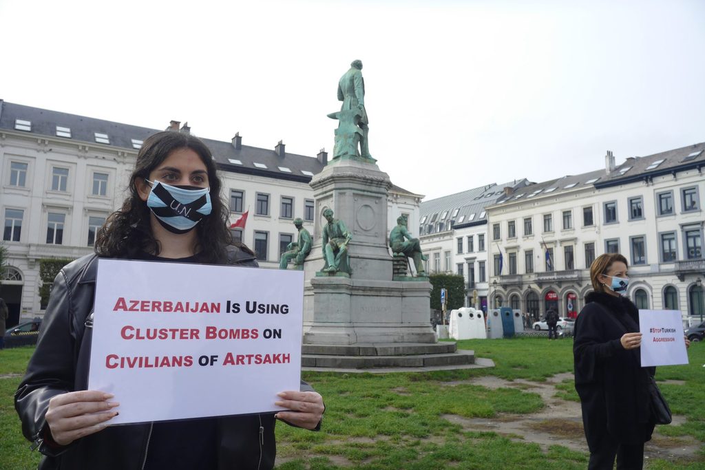 A flash-mob organised by the committee of Armenians in Belgium during the 2020 war. Credit: Belga / Ophelie Delarouzee