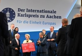 In a passionate speech, she said that the prize and the city of Aachen stand out as symbols of a united Europe, referring to three monuments in the centre of Aachen that “speak powerfully about history and the importance of Europe”.