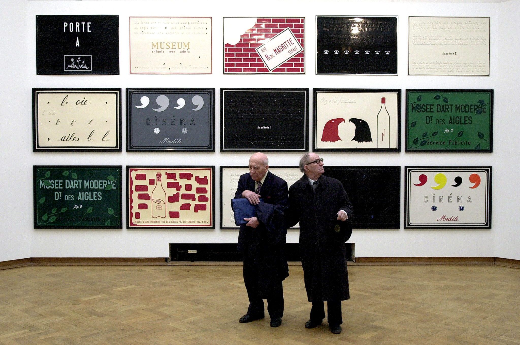 His artistic practice was often playful yet deeply subversive. One of his best-known works, Pense-Bête (1964), consisted of a stack of his unsold poetry books encased in plaster, rendering them unreadable. This act of self-erasure, both an elegy and an ironic statement on the commercial value of art, marked the beginning of his conceptual explorations. He went on to create fictional institutions, such as the Musée d’Art Moderne, Département des Aigles, a critique of museum culture that blurred the boundaries between real and imagined spaces.
