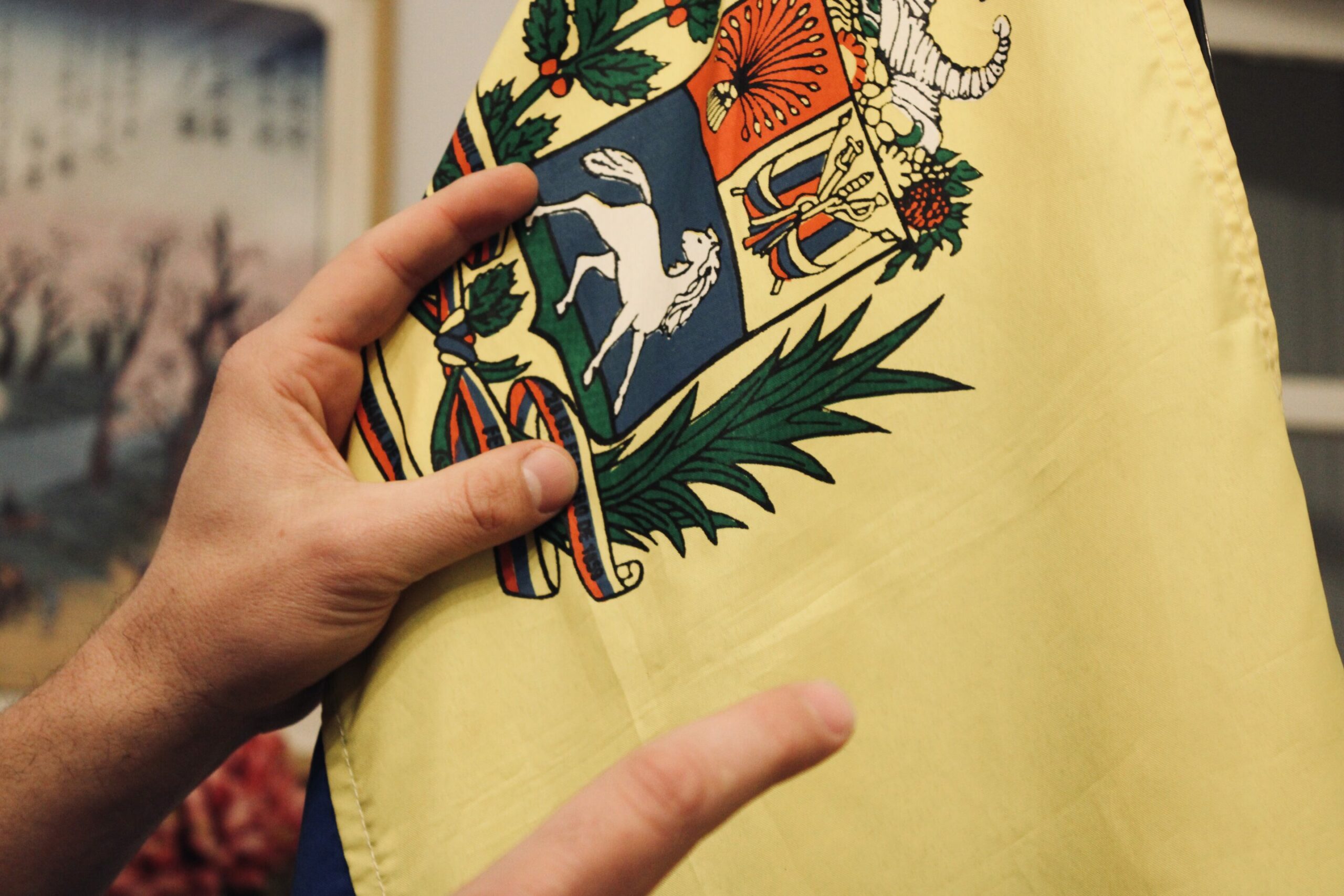 He remembers his first protest as a teenager, and the symbolism of the object he carried. "My mom gifted me the original Venezuelan flag for my first time protesting on the streets," he adds.