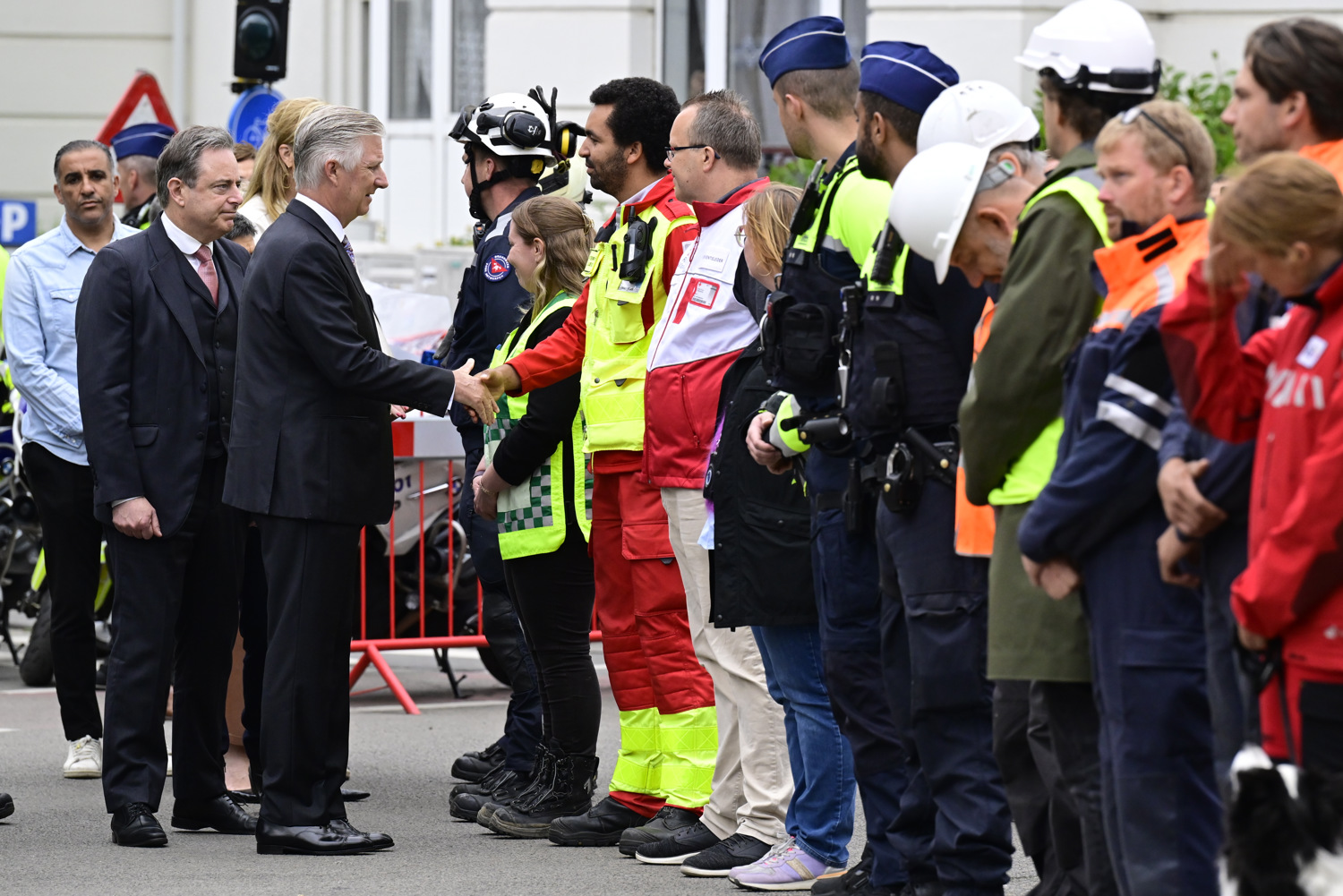 King Philippe visited the site of the explosion on Friday morning together with outgoing Home Affairs Minister Annelies Verlinden (CD&V) and Antwerp Mayor Bart De Wever (N-VA). The monarch met with on-site rescue workers and received updates about the search for victims.
