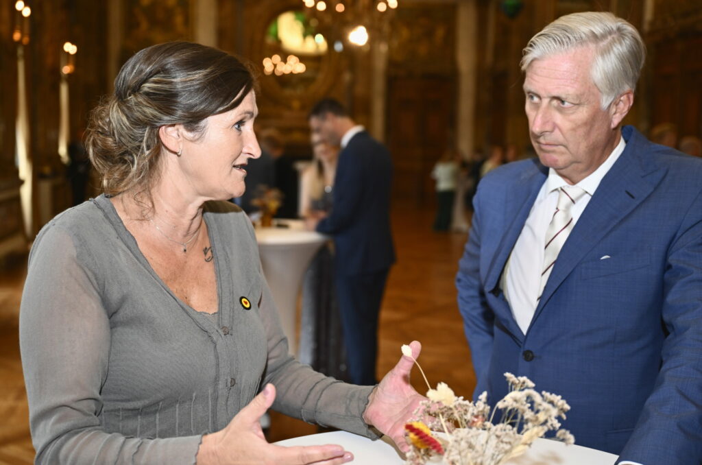 Ingrid Geudens and King Philippe, September 2024. Be Heroes is an initiative that honors Belgians who selflessly go out of their way to help others. Credit: Belga