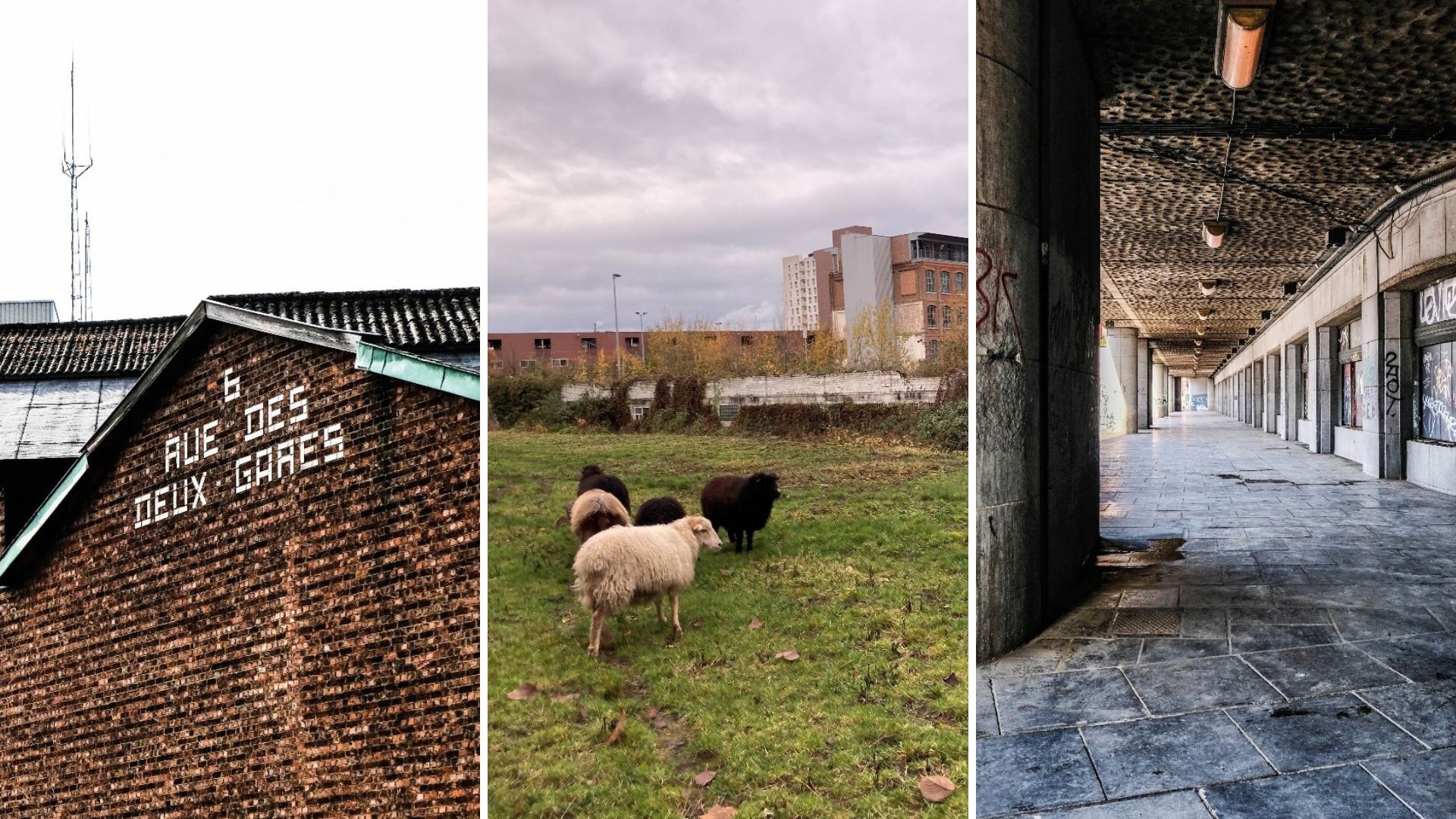 Left to right: Halle depots near the Ilot des Deux Gares; green spaces next to river Senne; the Quadrilaterals. Credit: Perspective Brussels