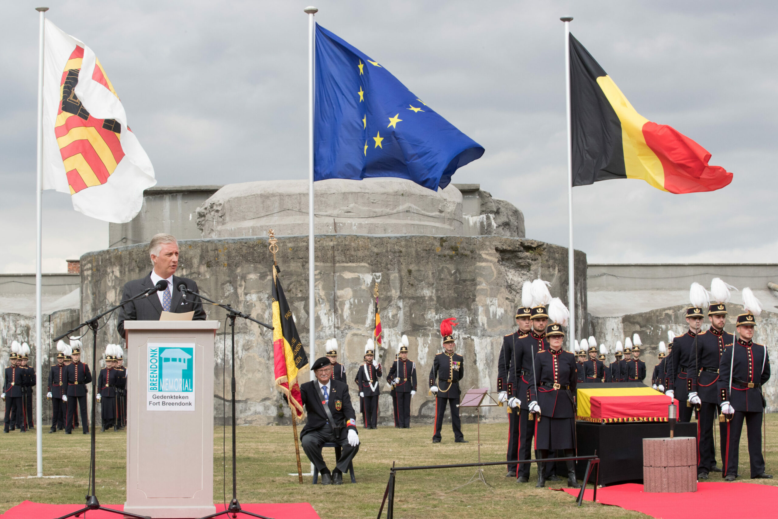 King Philippe of Belgium delivers a speech at the commemorations for the 75th anniversary of the liberation of the Fort of Breendonk, Wednesday 18 September 2019. Credit: Belga