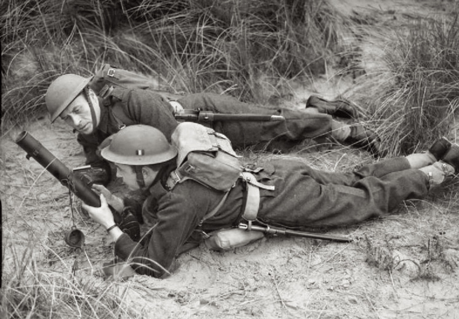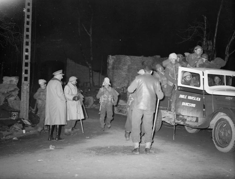 British soldiers on the quay at Namsos awaiting evacuation from Norway. On the left is Major General Carton de Wiart.