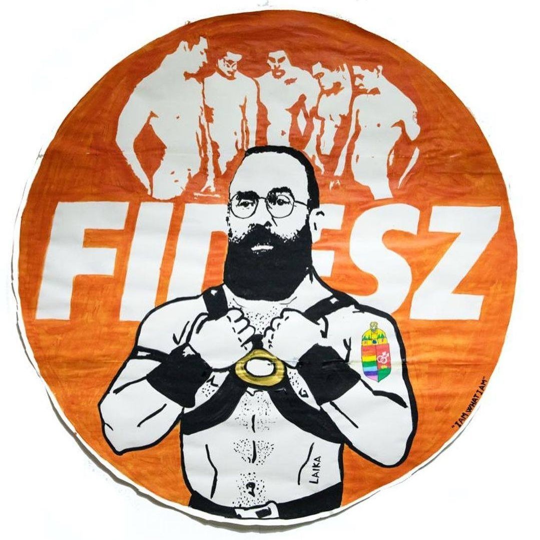 Illustration showing the Hungarian MEP Josef Szajer as a new gay icon. Credit : Laika McMliv