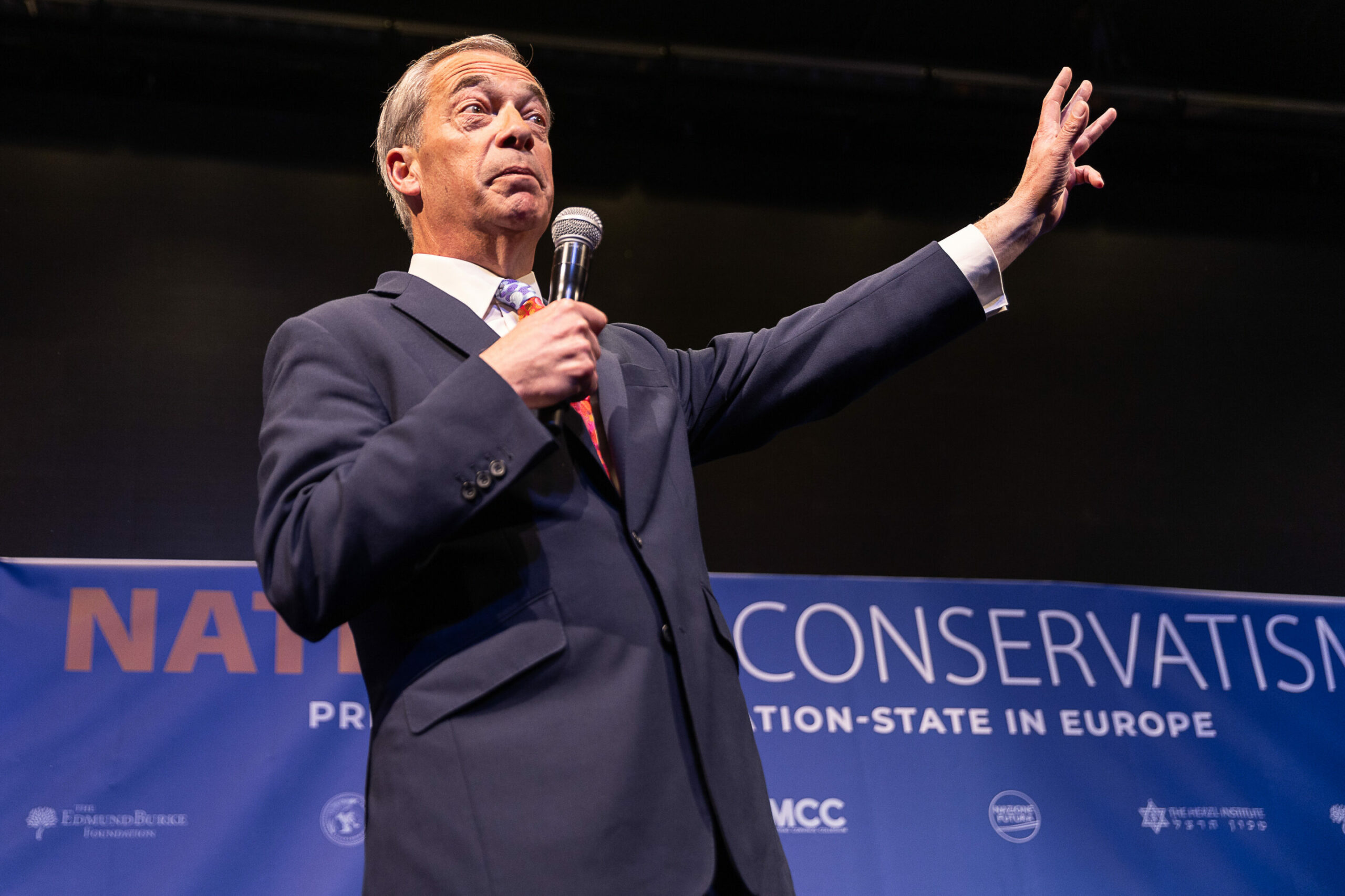 The Edmund Burke Foundation's events in Brussels bring a string of familiar faces from the European right to Brussels, including the UK's Eurosceptic Reform UK MP, Nigel Farage. The former UKIP leader campaigned for the UK's exit from the European Union. Credit: Belga/ James Arthur Gekiere