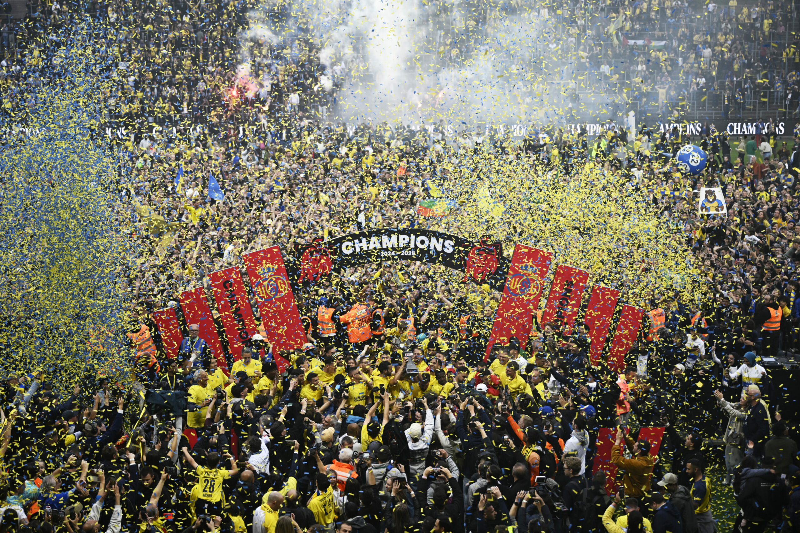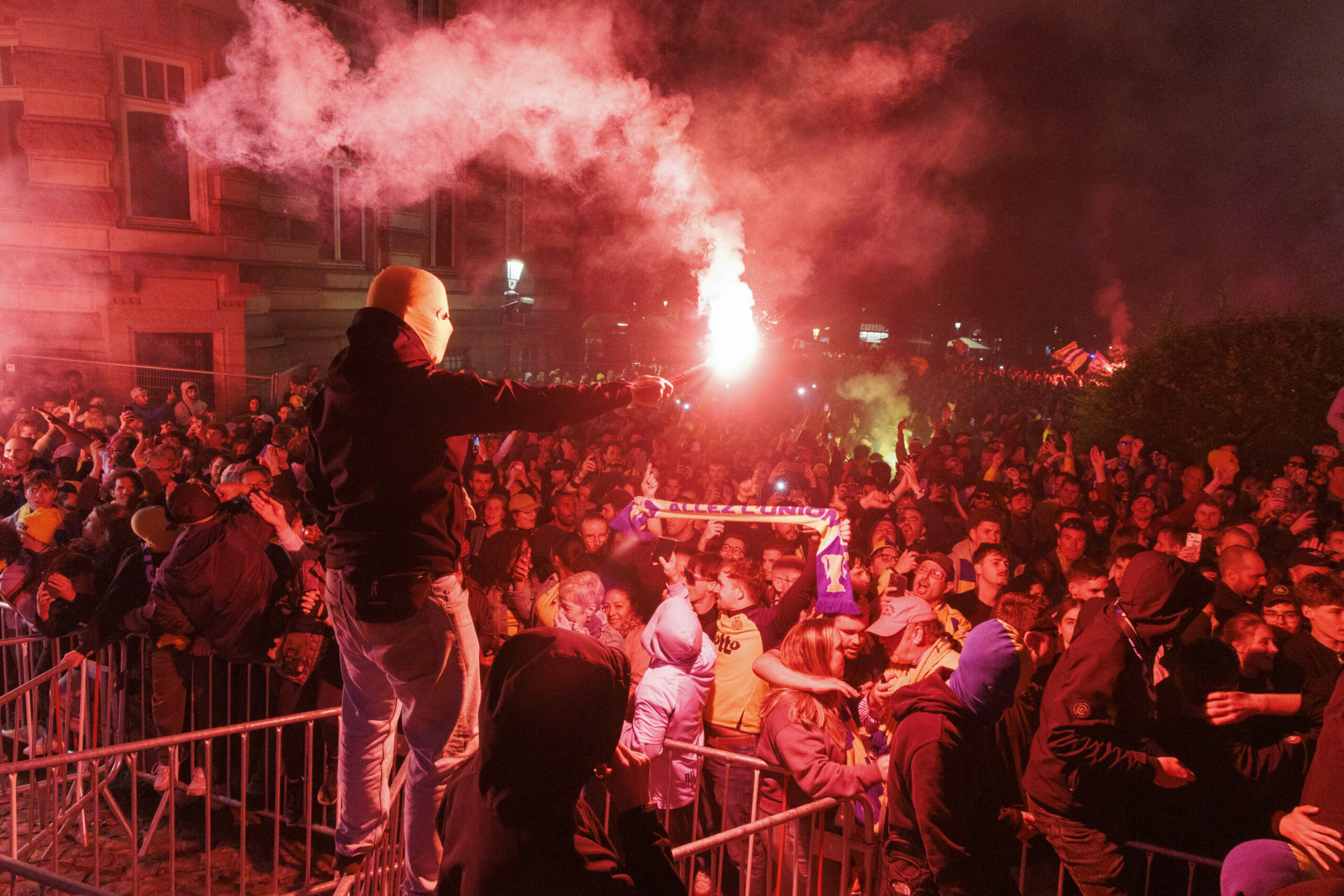 With about 15 minutes to go, the police unexpectedly opened the gates for everyone to enter the square. Just minutes later, David put Union in front, sending the square into jubilation. He later added another, sealing the title for the Brussels side.