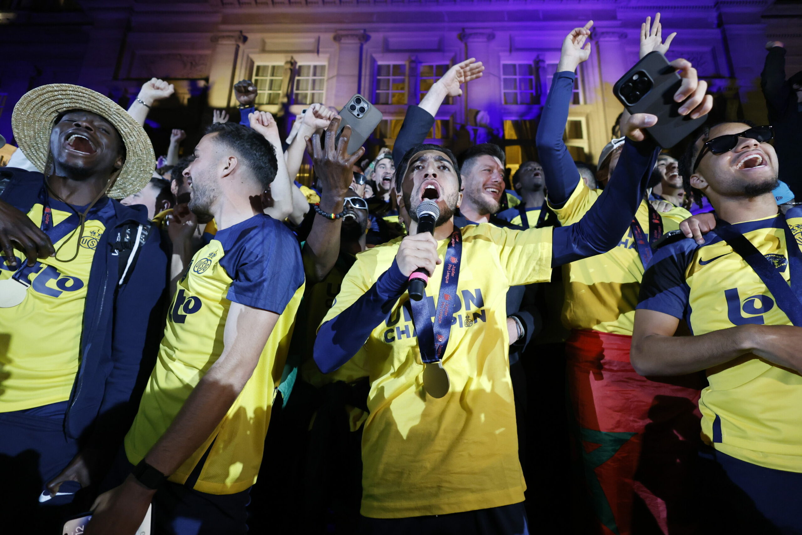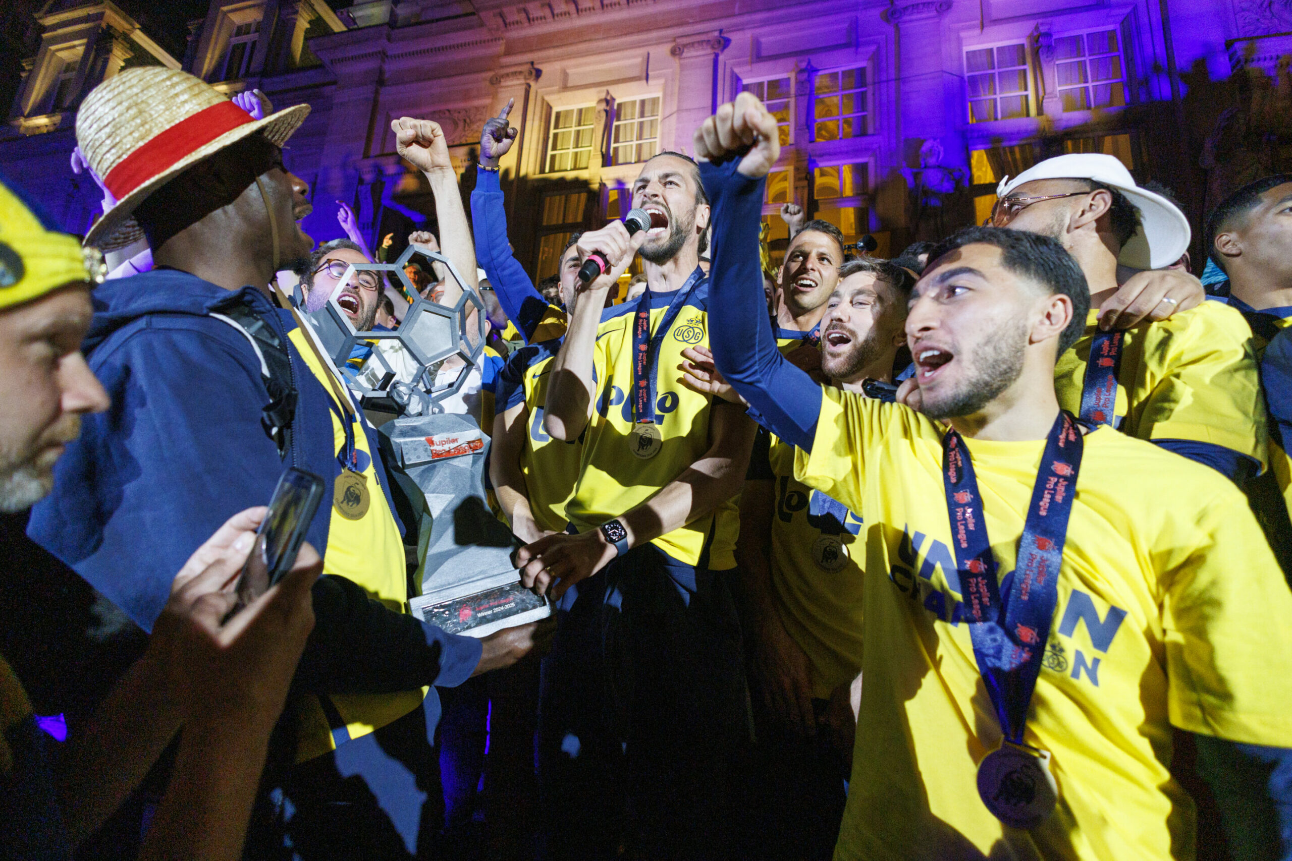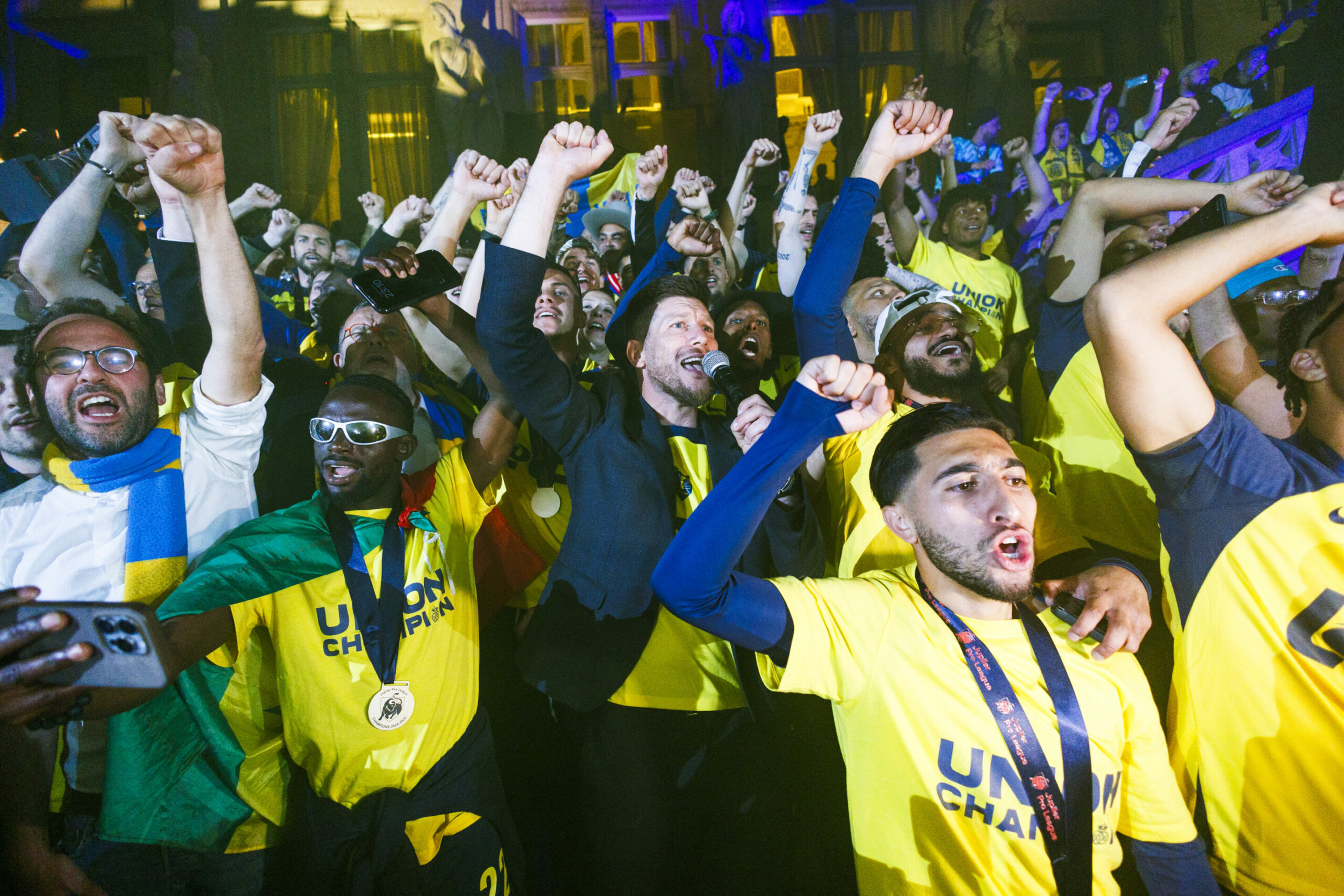 Fans of Union Saint-Gilloise crowded the square outside the Saint-Gilles municipal hall on Sunday night after ending a 90-year title drought. Singing, dancing, and cheering greeted the players who appeared on the balcony at around 23:00, in what was a historic night for the club and the municipality.