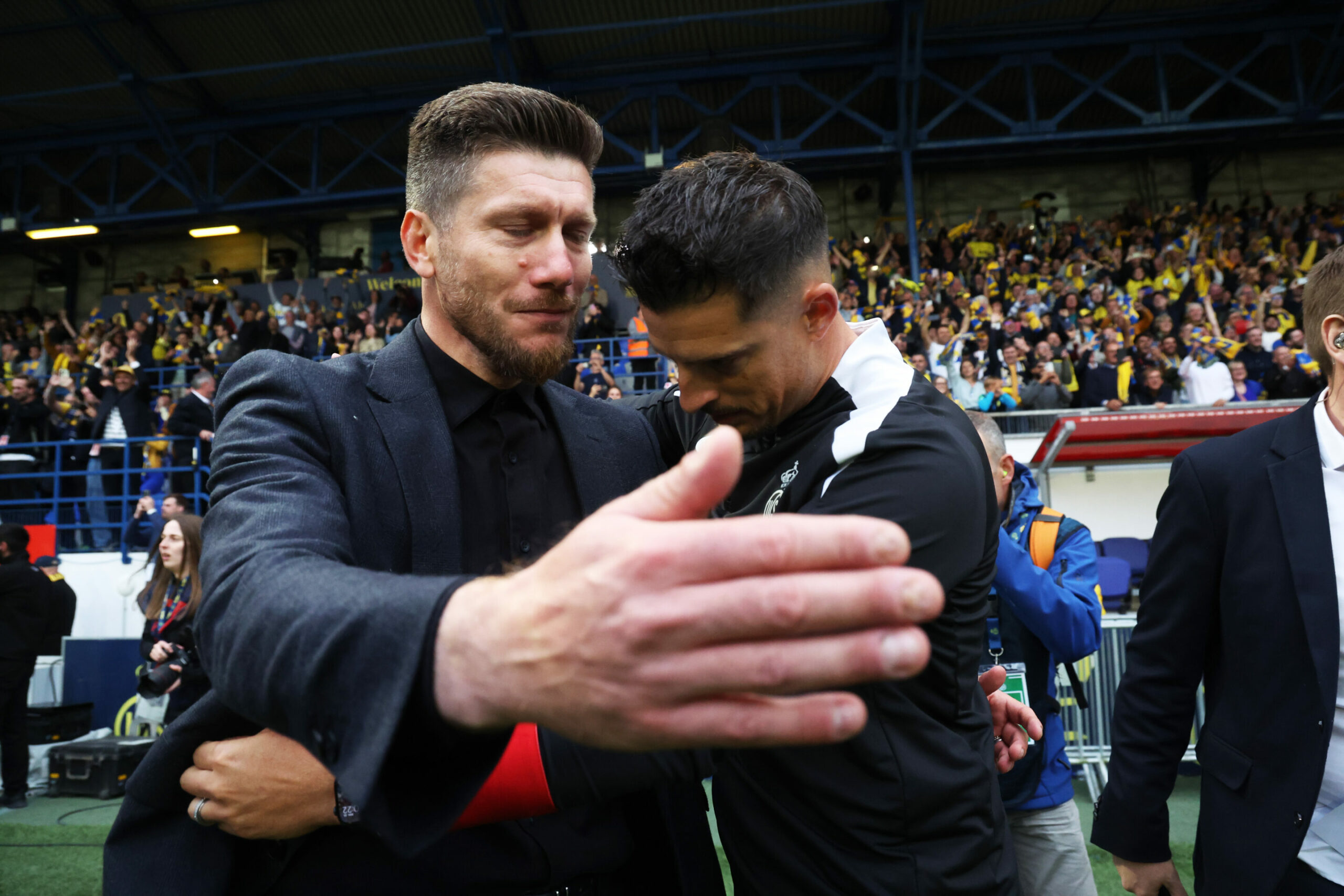 As the final whistle blew at the Joseph Marien stadium, fans streamed onto the pitch to celebrate with the players.