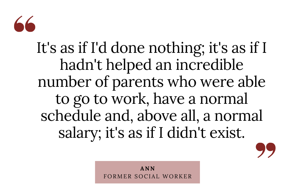 "It's as if I'd done nothing; it's as if I hadn't helped an incredible number of parents who were able to go to work, have a normal schedule and, above all, a normal salary; it's as if I didn't exist."