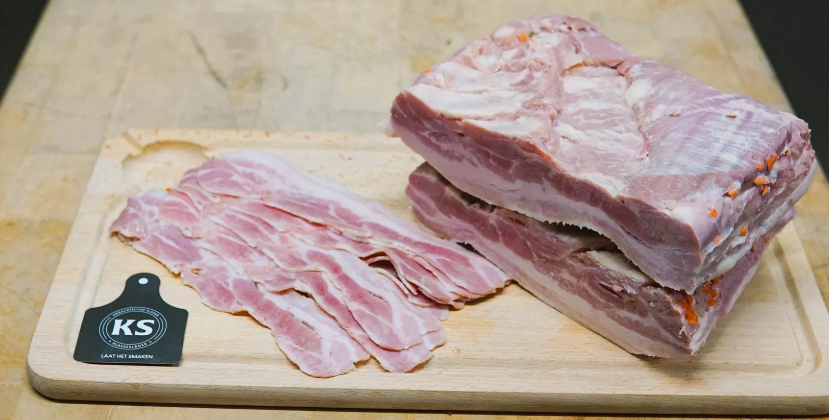 Lastly, cooked bacon was a typical slaughter preparation in Flanders for a long time, but it disappeared in many places. In the Waasland area, cooked bacon remained a popular butcher's product. That is why 6 Class Butchers joined forces and developed a recipe based on and with respect for local tradition, offered by Boerke Waas.