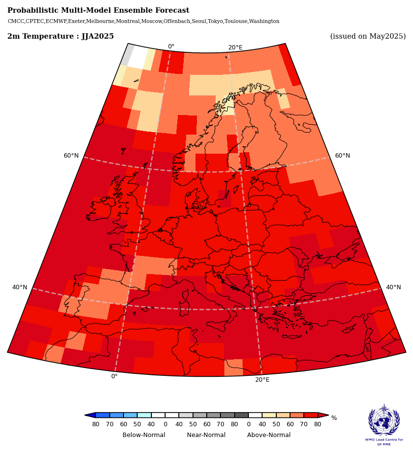 For June through August, the ECMWF overwhelmingly favours above-average temperatures for Belgium and much of Europe, with a strong likelihood of below-average rainfall. July, in particular, is shaping up to be hot.