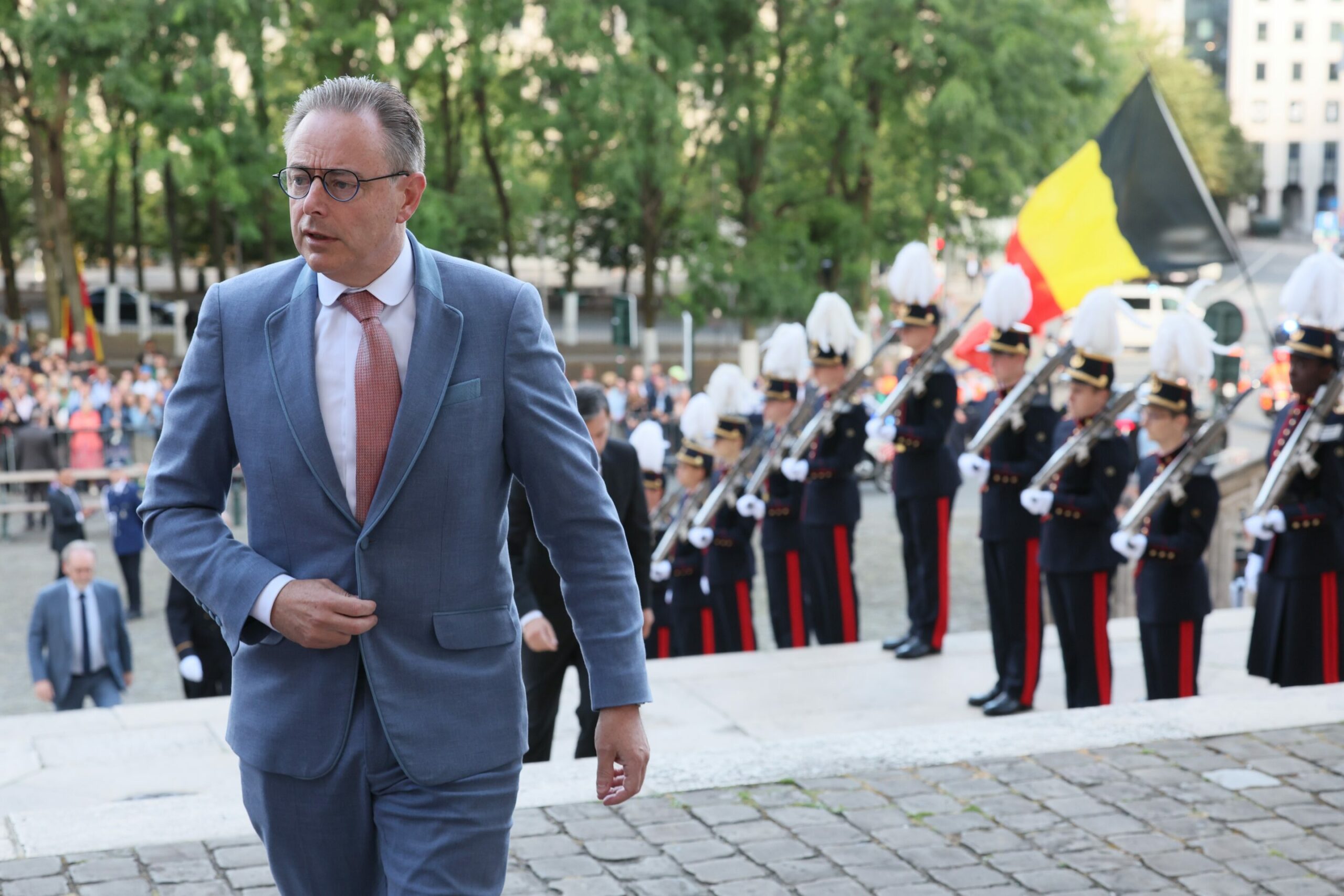 Prime Minister Bart De Wever arrives for the Te Deum mass, on the occasion of the Belgian National Day, at the Saint Michael and Saint Gudula Cathedral in Brussels, Monday 21 July 2025. Credit: Belga / Benoit Doppange