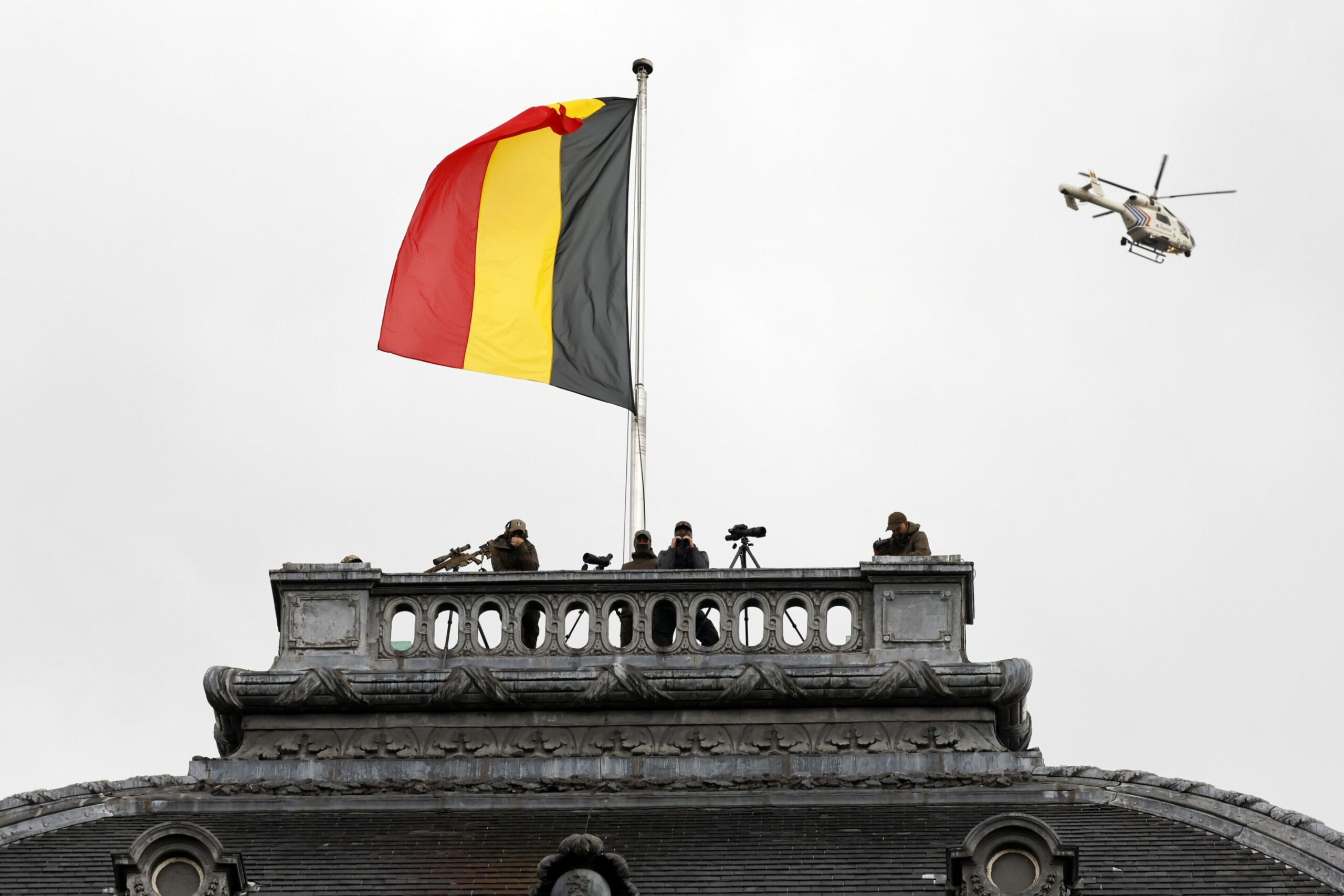 Snipers are seen on a roof before the military and civilian parade on the Belgian National Day, in Brussels, Monday 21 July 2025. This parade pays tribute to our country's security and emergency services, such as the army, police, fire brigade or civil protection.
