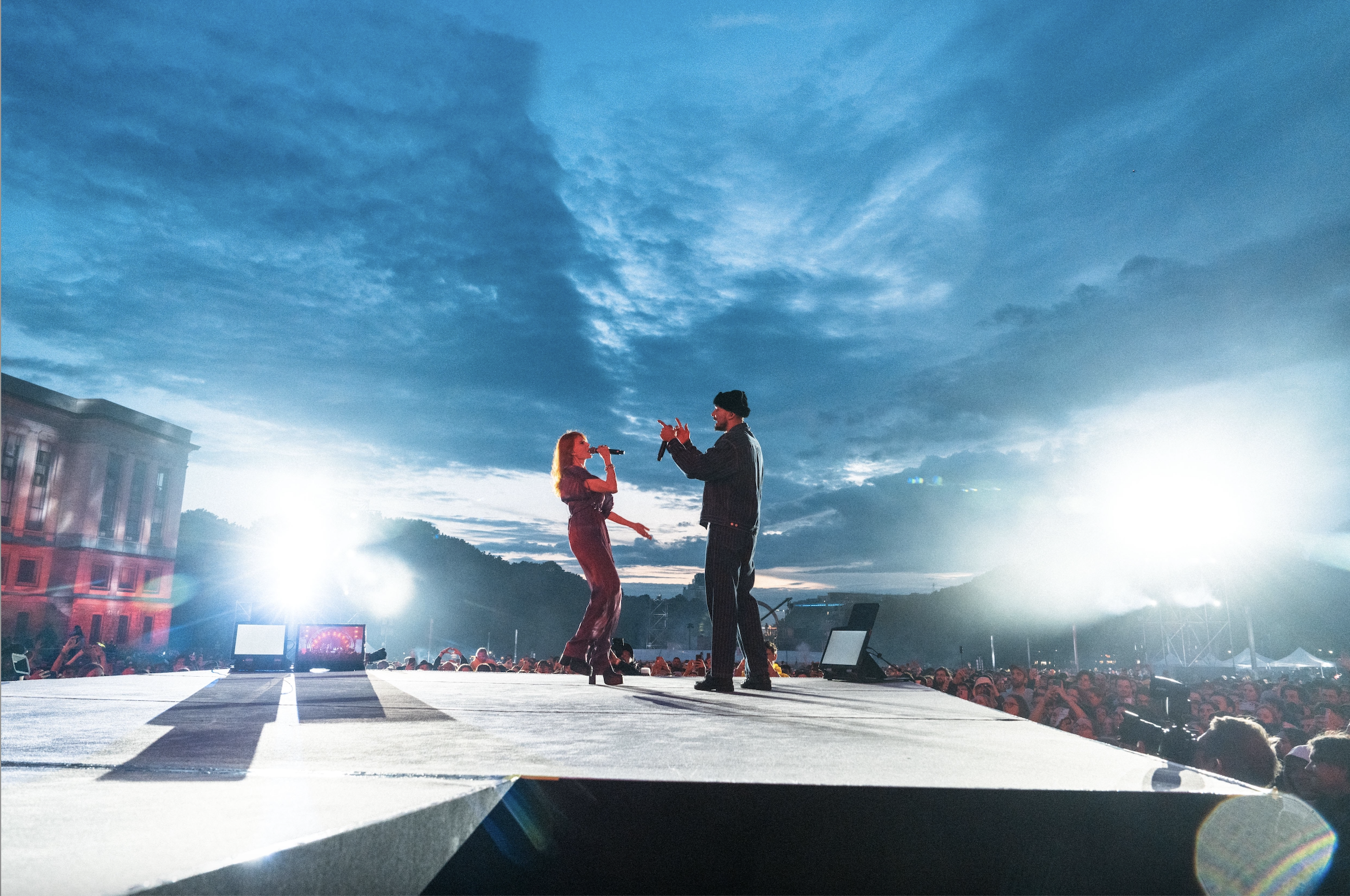 Belgian rapper Peet and Axelle Red perform at the end of the celebrations on the Belgian National Day, Monday 21 July 2025 in the Parc du Cinquantenaire. Credit: Belga / Marius Burgerman