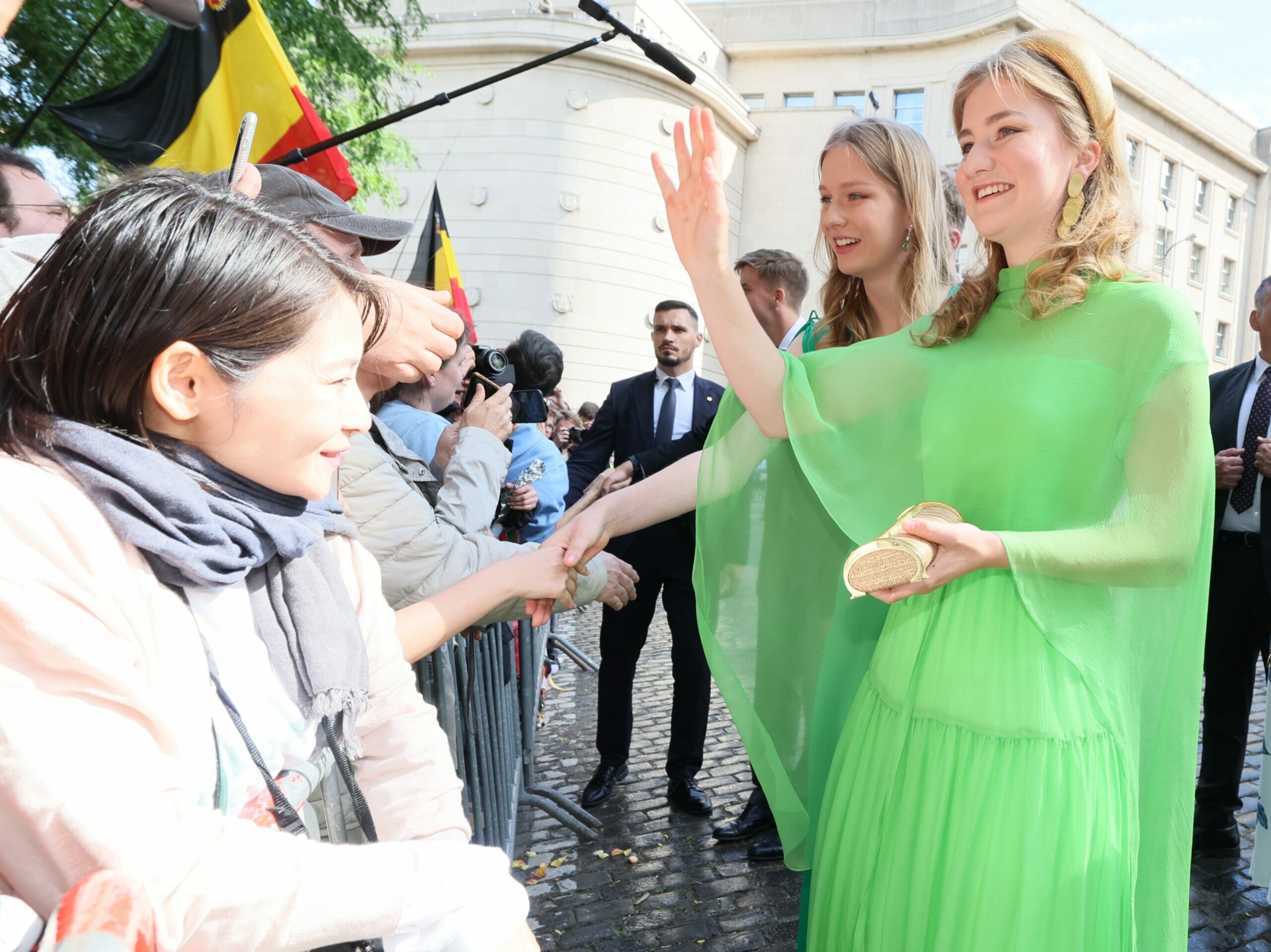 Princess Eleonore and Crown Princess Elisabeth meet citizens at the Te Deum mass, on the occasion of the Belgian National Day, at the Saint Michael and Saint Gudula Cathedral in Brussels, Monday 21 July 2025. Credit: Belga / Benoit Doppange