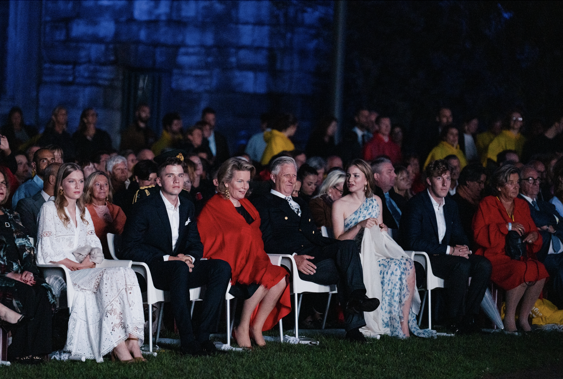 Princess Eleonore, Prince Gabriel, Queen Mathilde of Belgium, King Philippe - Filip of Belgium and Crown Princess Elisabeth, Prince Emmanuel pictured during a concert for Belgian National Day, Monday 21 July 2025 in the Parc du Cinquantenaire. Credit: Belga / Marius Burgelman