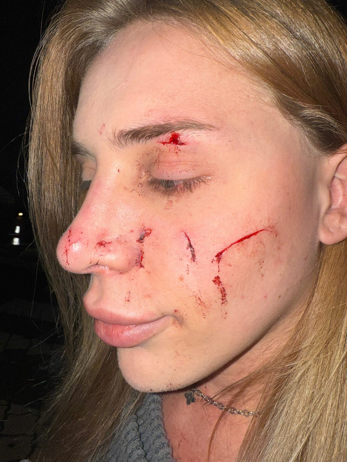 I threw a drink at one of them, just the liquid (water), not the glass. And at that moment, everything went haywire. I got a full broken sharp glass in my face with alcohol that blinded me. Everything was blurry and bloody. I could hear the shouting and crying of my friend who was witg and was desperately trying to lure them away.