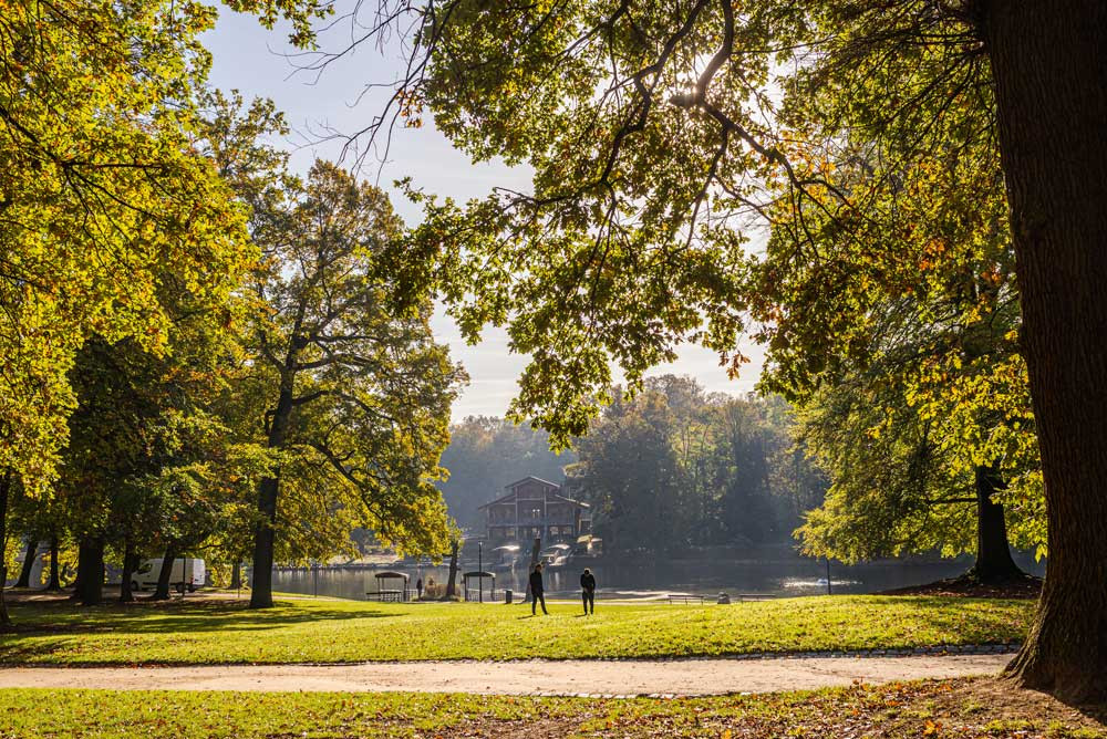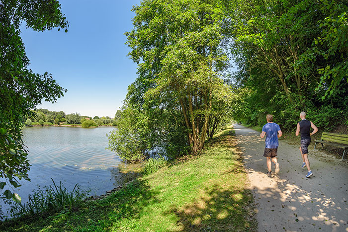 The park trails are a loop of roughly 2.5 km, making it the perfect location for a relaxing jog surrounded by greenery, water, and (farm) animals while still regularly coming across other people walking, picnicking, or just relaxing.