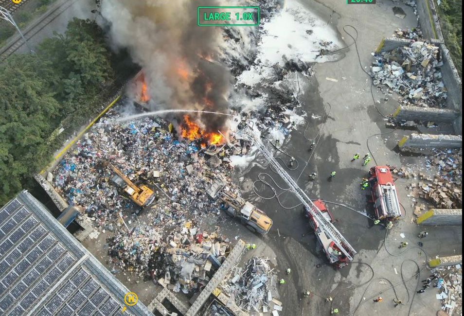 Drone image of the fire at Anderlecht waste sorting centre on Thursday 7 August 2025. Credit: Brussels Fire Brigade