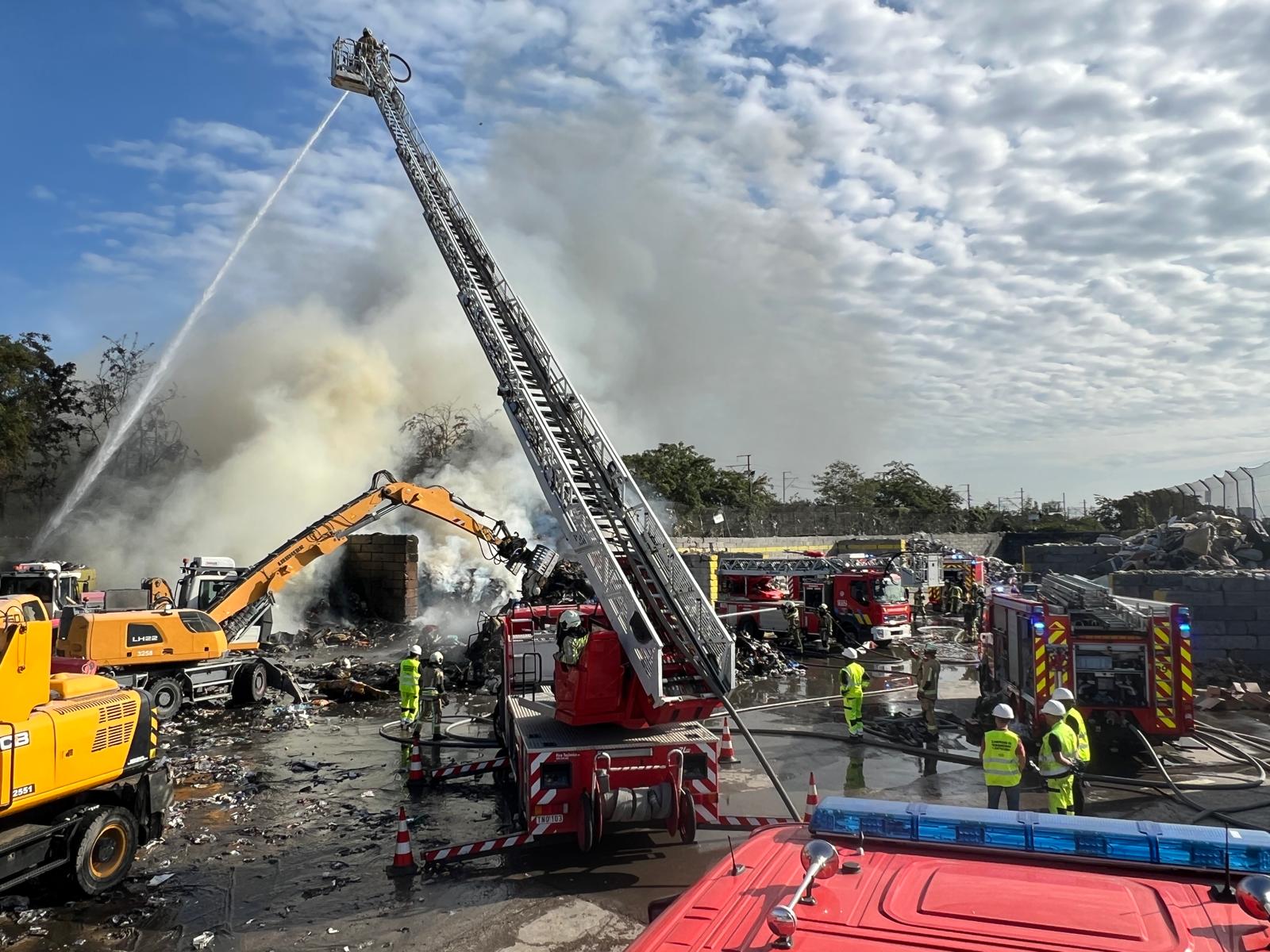 To completely extinguish the fire, a company crane dismantled the waste pile, allowing the firefighters to spray all parts thoroughly.