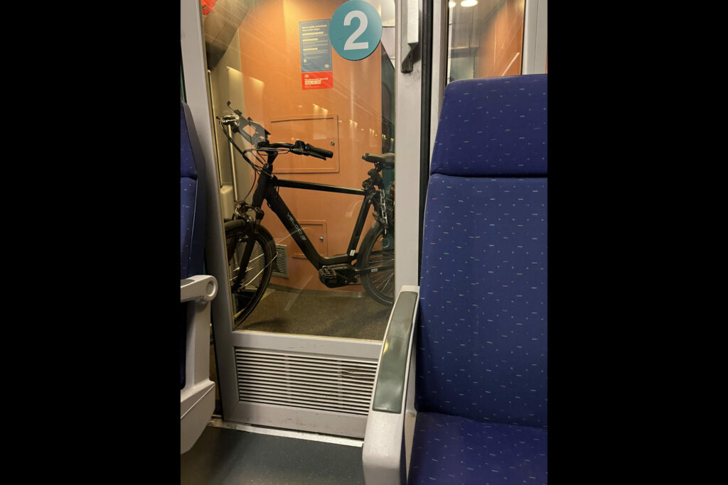 E-bike being carried on a Dutch train. Credit: Kosmos Khoroshavin / The Brussels Times